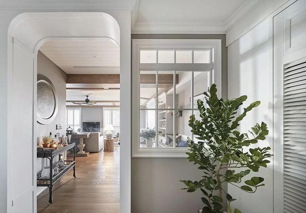 半墙搭配窗户隔断化解入门见客厅的尴尬