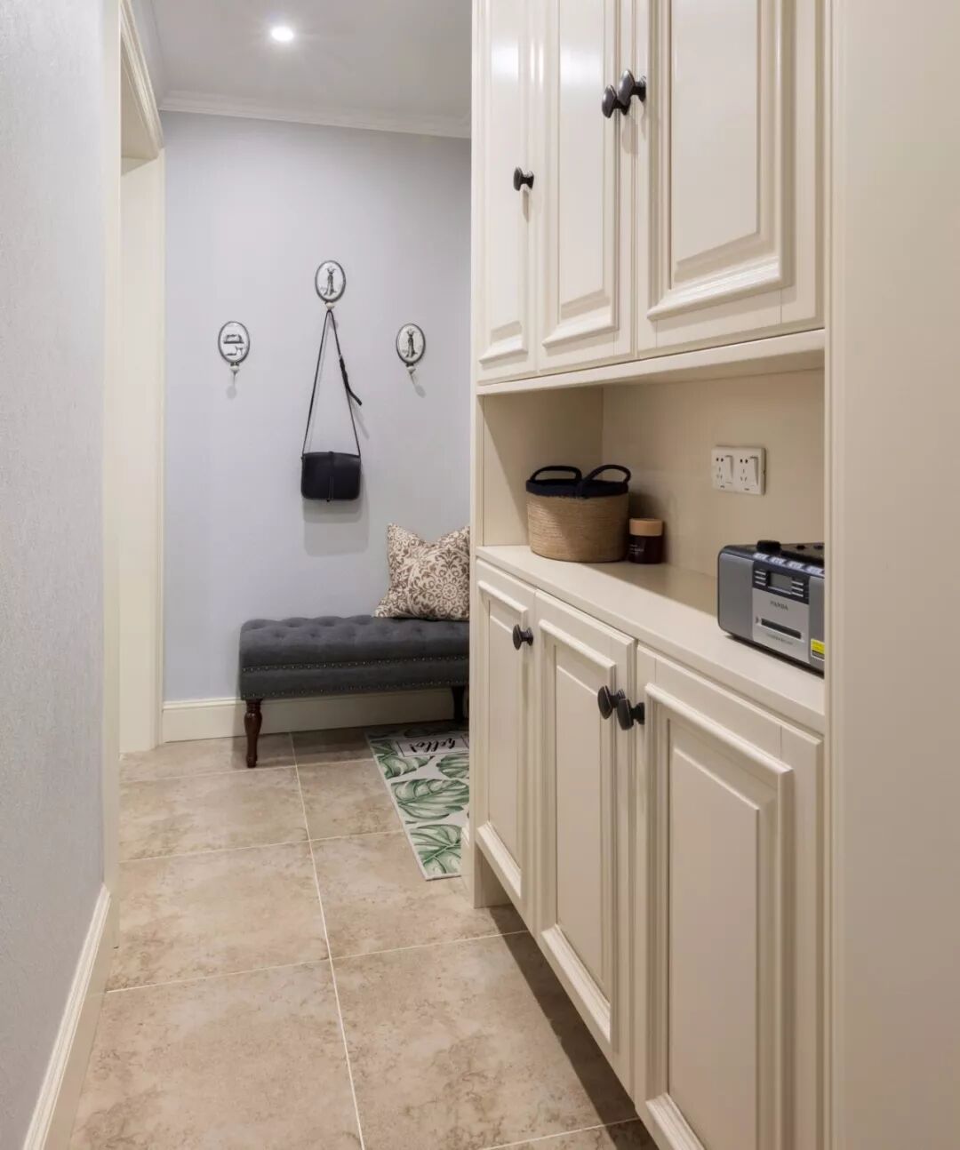 除此之外,玄关处以常穿的鞋为主。家中成员多,鞋柜肯定会大爆满,因此鞋子也要分类、分区收纳。