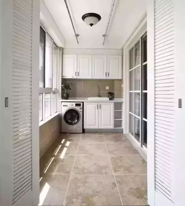 3.阳台柜:阳台不仅是晒衣服的地方,同时也可以做收纳柜,方便放一些肥皂、洗衣粉等物品。