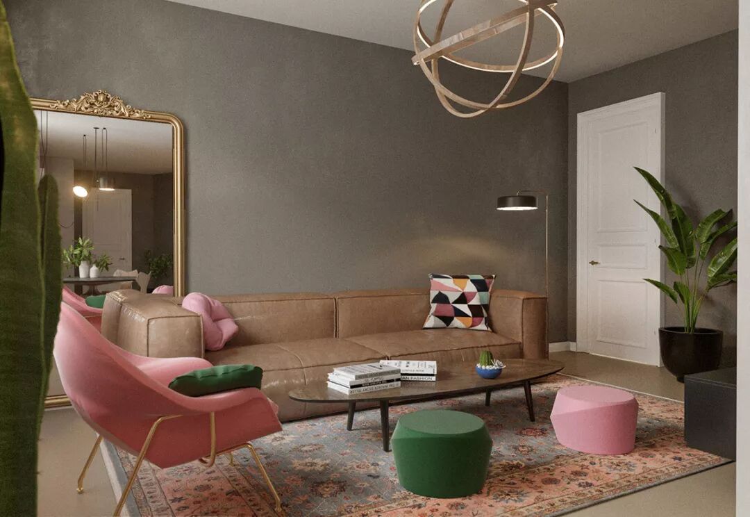 彩色靠垫为灰调沙发带来新色调