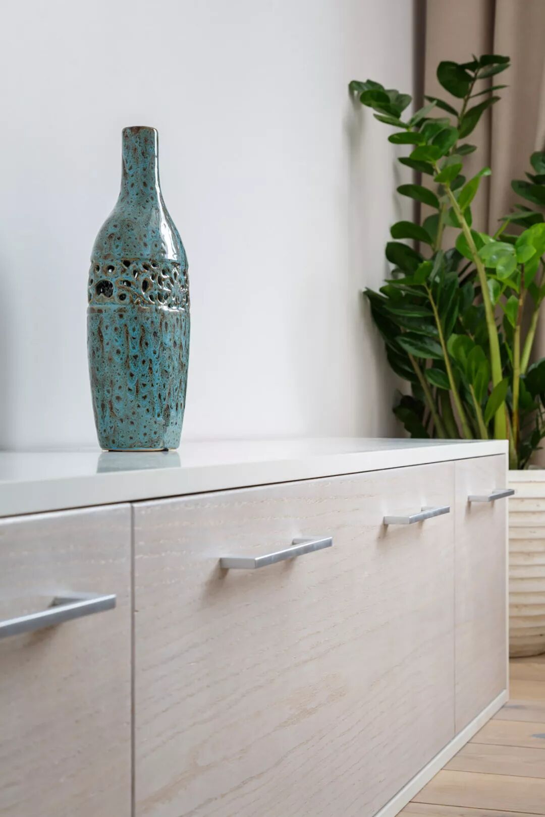 大型绿植在沙发折角的背后
