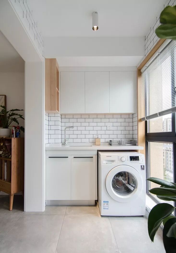 洗衣的问题就更简单了,直接将洗衣机放到阳台即可。现在很多家庭都会这样,洗完直接晾晒。