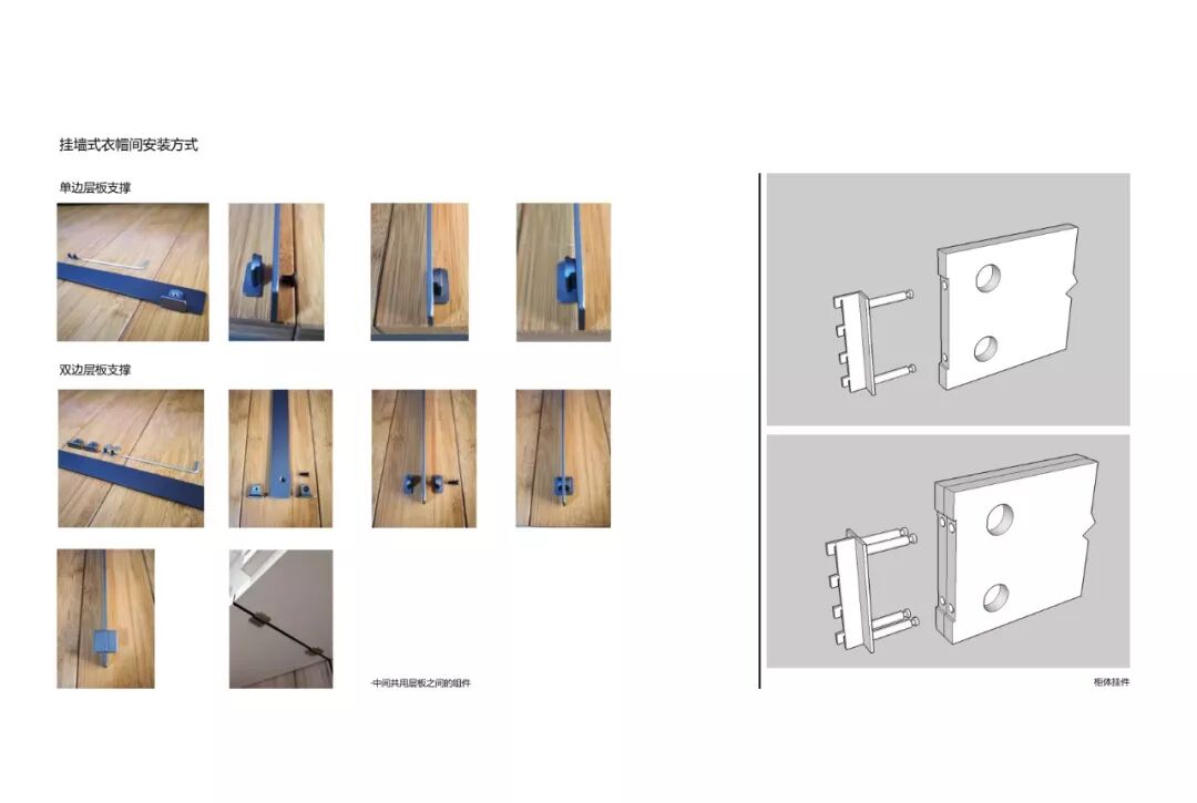 14、安装单边层板支撑、双边层板支撑、中间共用层板之间的组件;