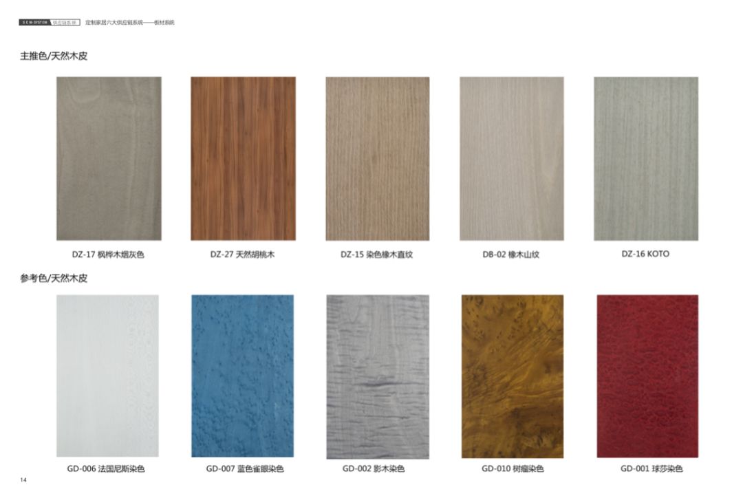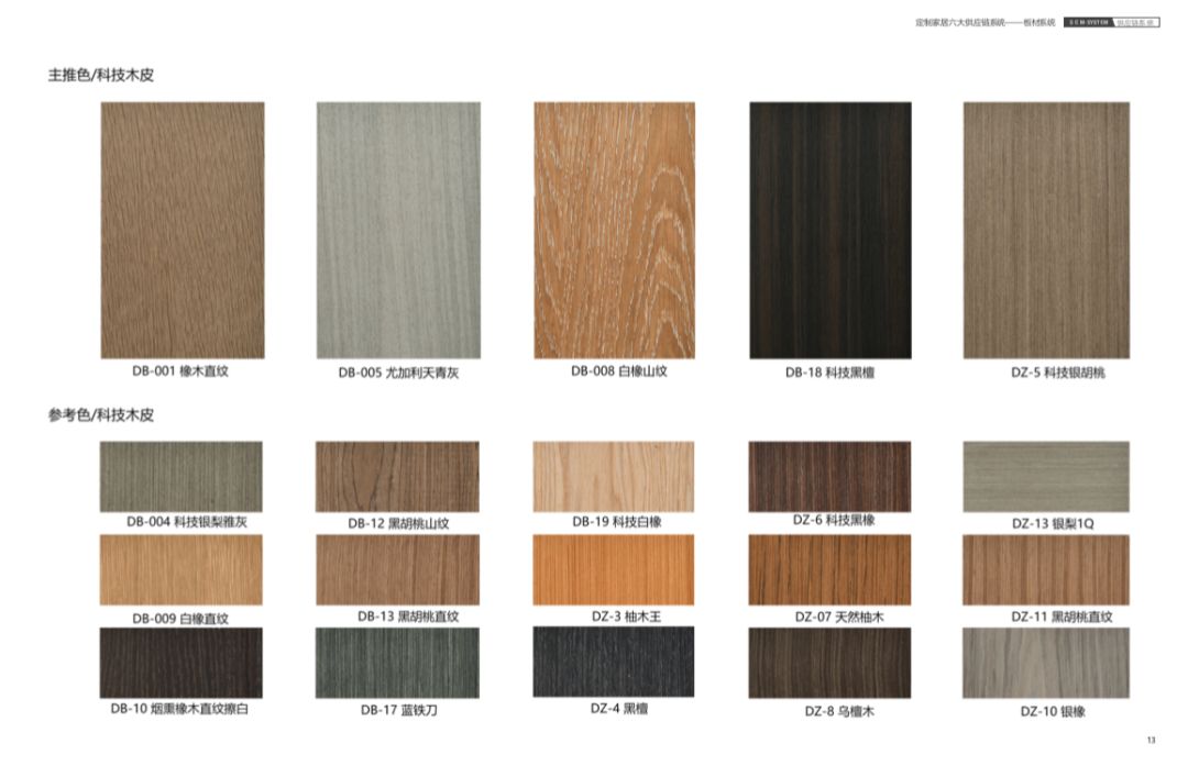 板材是挂墙衣帽间的重要组成部分,常用板材分为免漆板、预油漆板(混油、科技木皮、染色木皮、天然木皮)、实木板、皮革板和布纹板等。