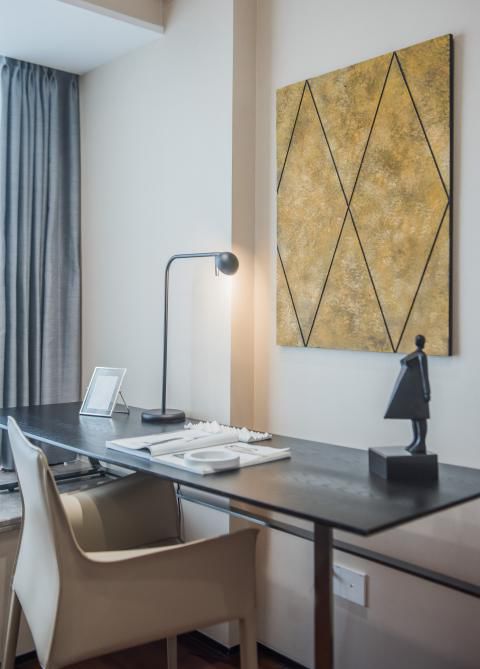 用膳空间及书房沿用古色古香的中式元素和简单素雅的现代线条自然衔接,设计上令空间的现代气息与东方韵味共存且维持平衡,打造质感十足的室内氛围。