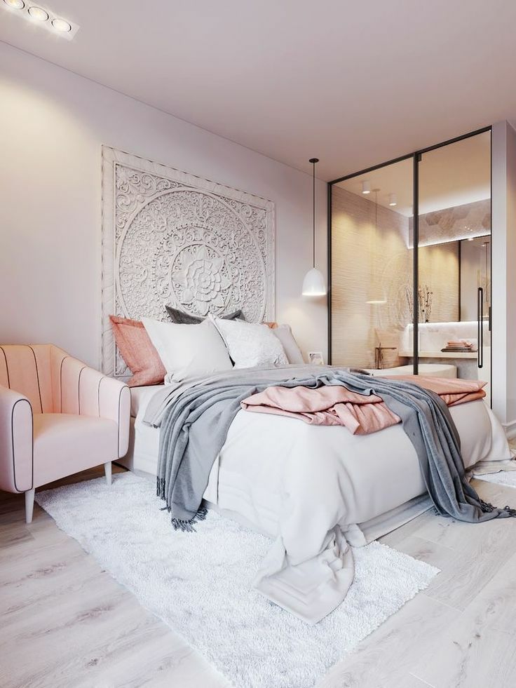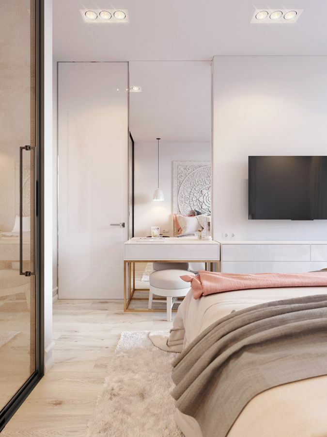 每个女人都爱浪漫,其实浪漫卧室不一定是法式风格,简约的卧室也可以很浪漫,色彩柔和温馨,从视觉来看超级美也很和谐,不管是卧室的柜体收纳物,还是床品装饰物,都在简单中引导我们精神放松。