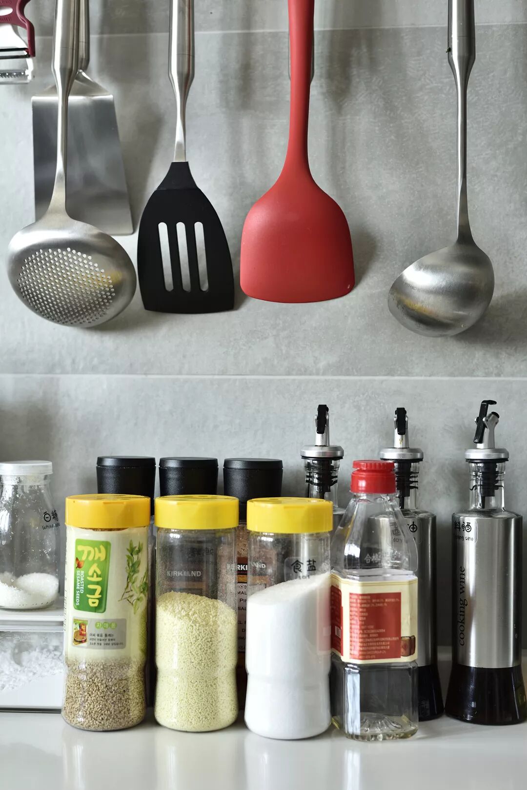 ▲瓶瓶罐罐装着辅料,为下厨提供了方便。
