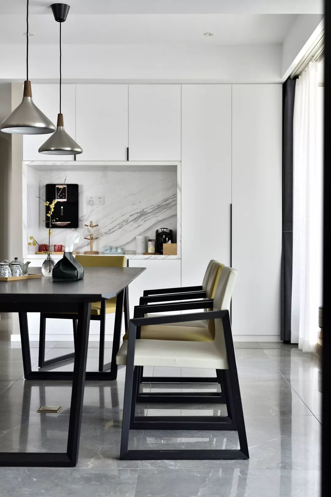 ▲餐厅的空间比较宽敞,餐桌椅居中布置的基础,还有着丰富d额储物柜,同时还加入了料理台,提供了情趣丰富的餐厨生活体验。