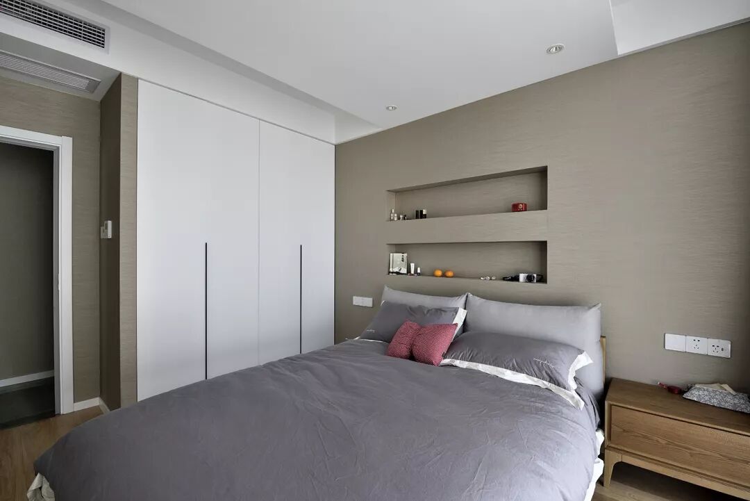 ▲客房以咖色的墙面,床头墙上还有双层的壁洞,搭配灰色床单,显得舒适简约好自然。