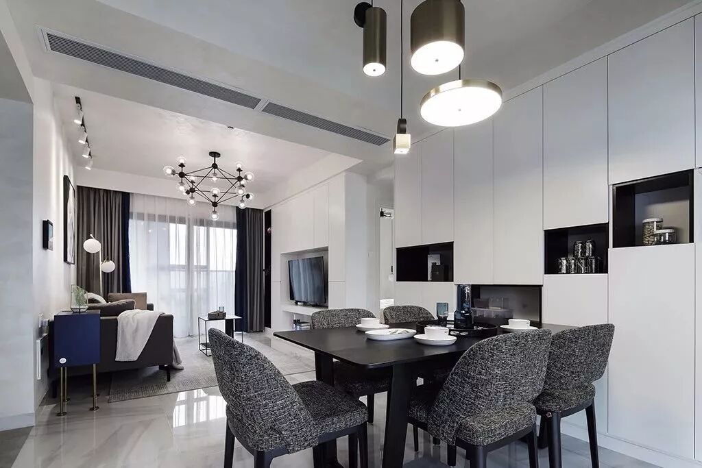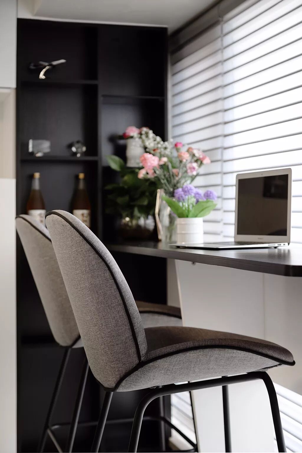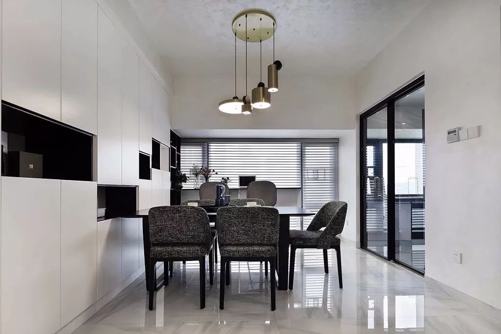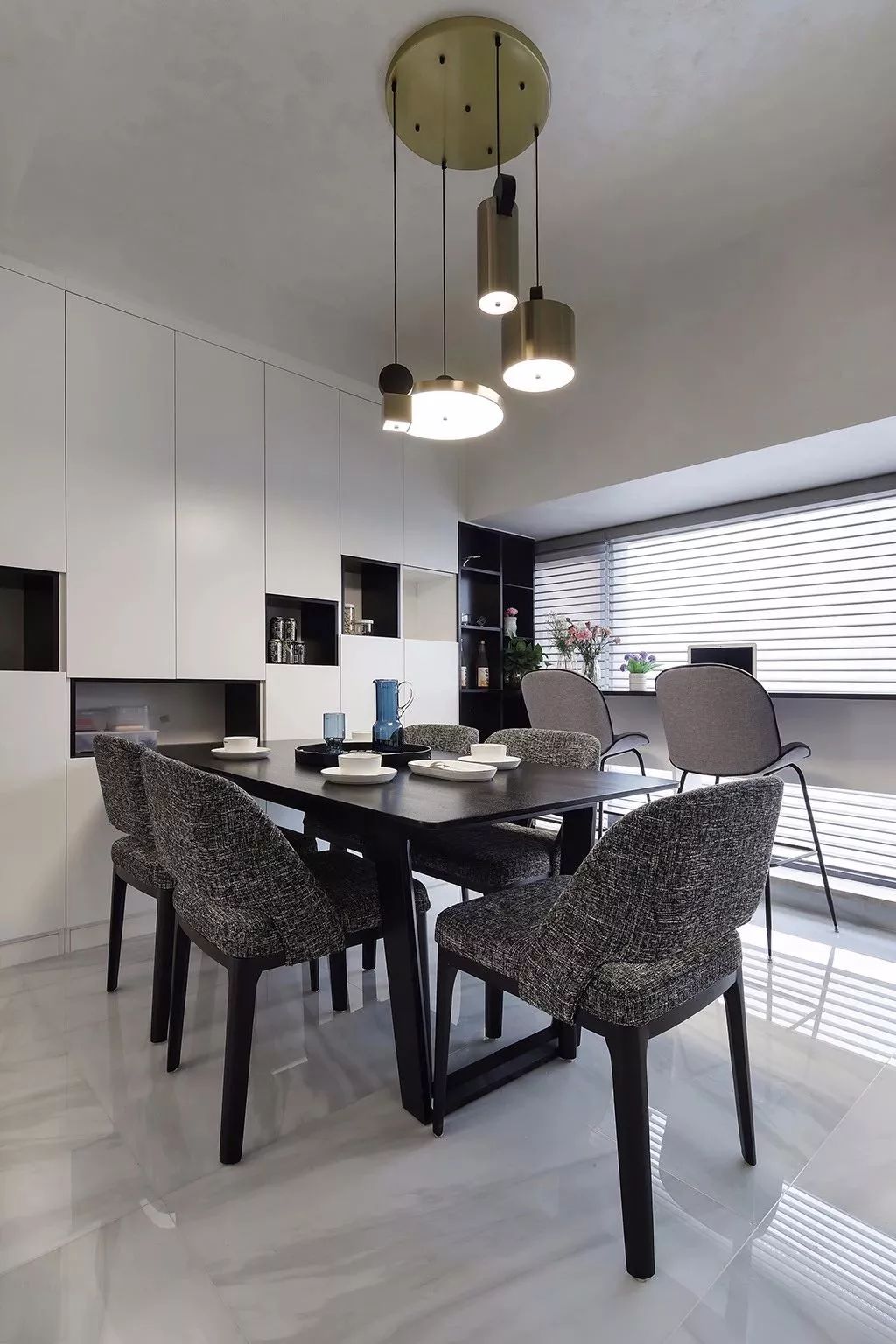▲餐厅的灰色餐椅+黑色餐桌,与客厅的家具风格上保持一致,整体显得端庄而又稳重舒适。