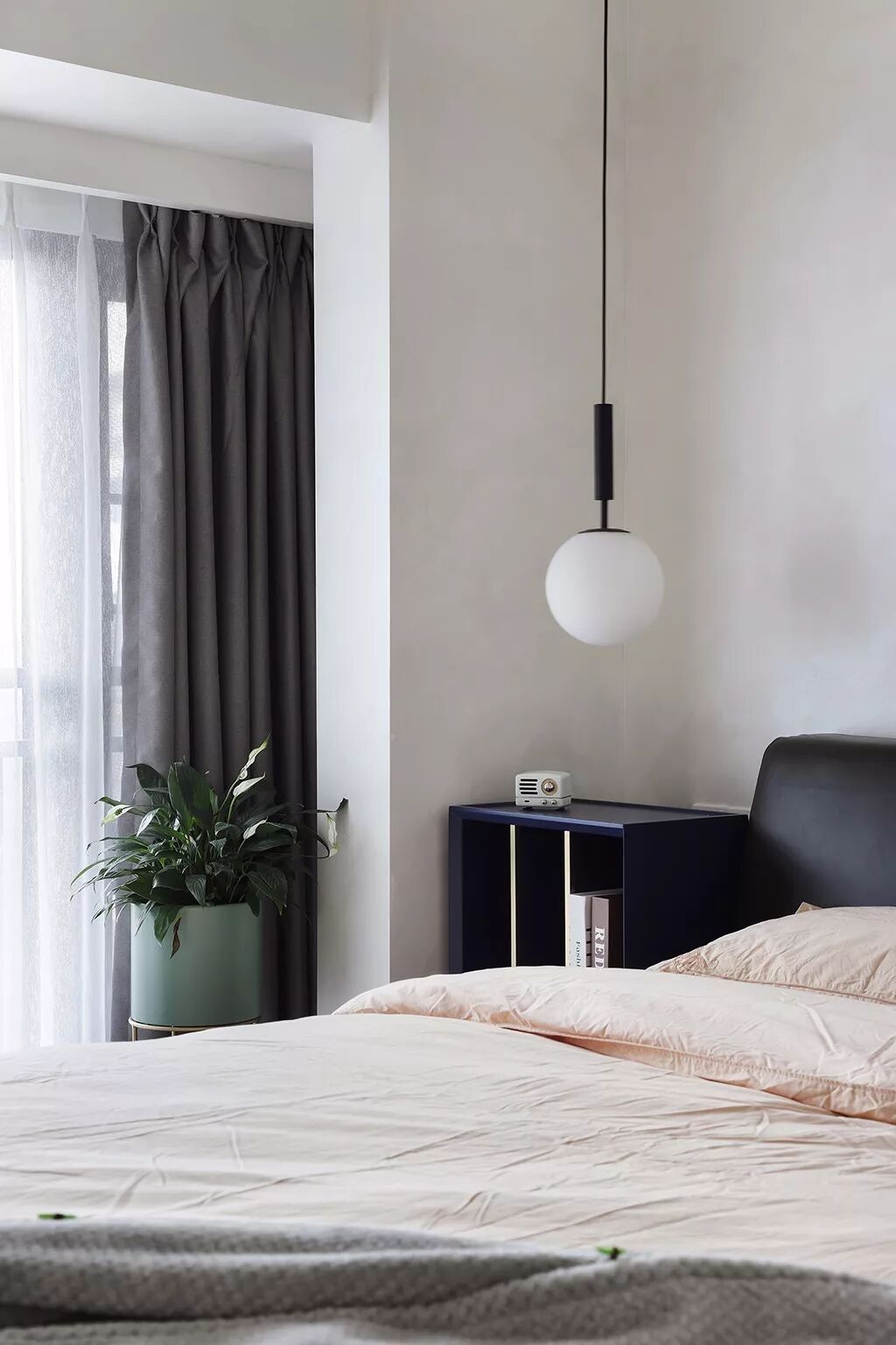 ▲阳台打通纳入到卧室,摆上绿植显得格外的自然精致。