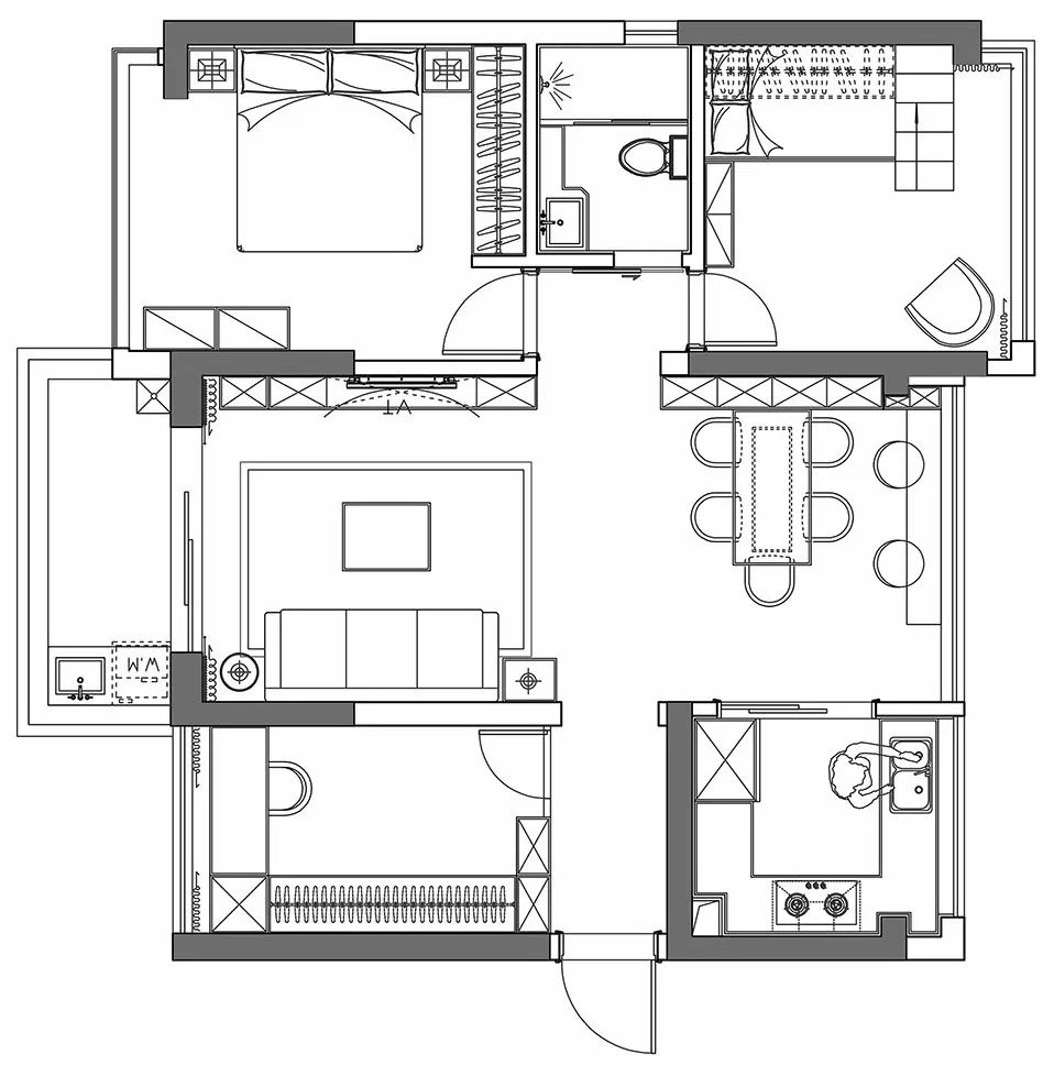 这套89平米的房子,整体户型格局方正实用,在现代风格的空间基础下,搭配上深色稳重的家具色调,带来的是一个成熟舒适的大气氛围。