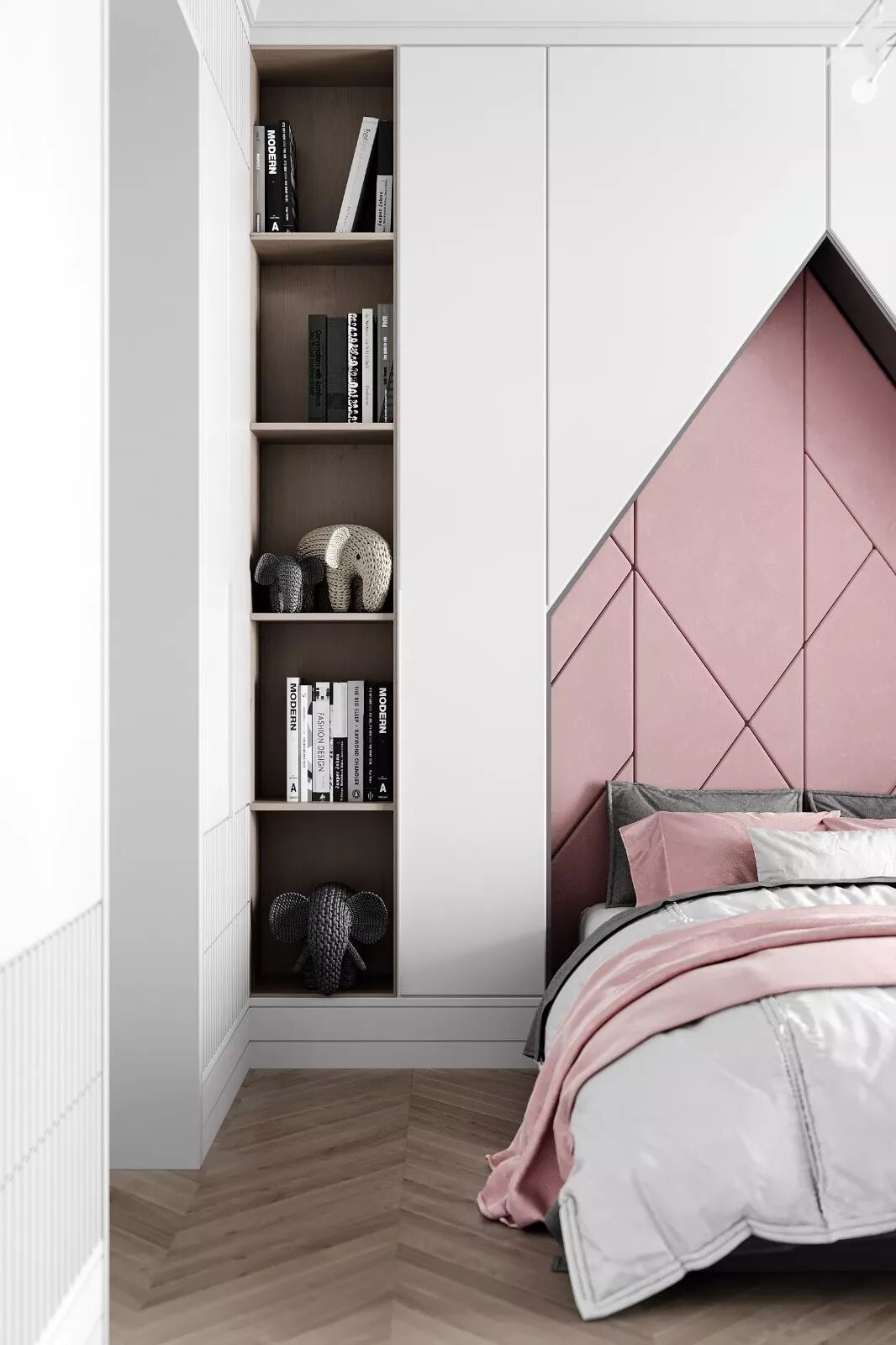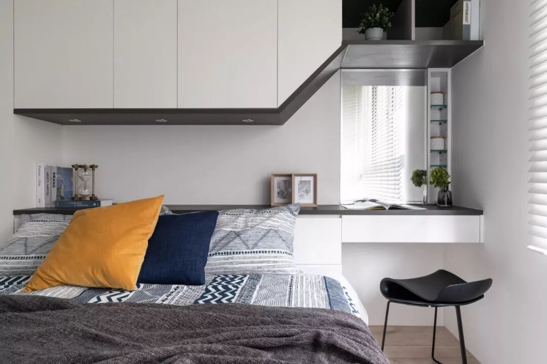 这样做,不仅立体、宽敞,也大大增强了卧室的收纳功能。