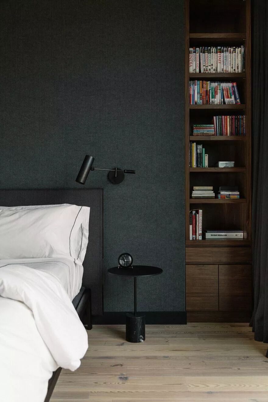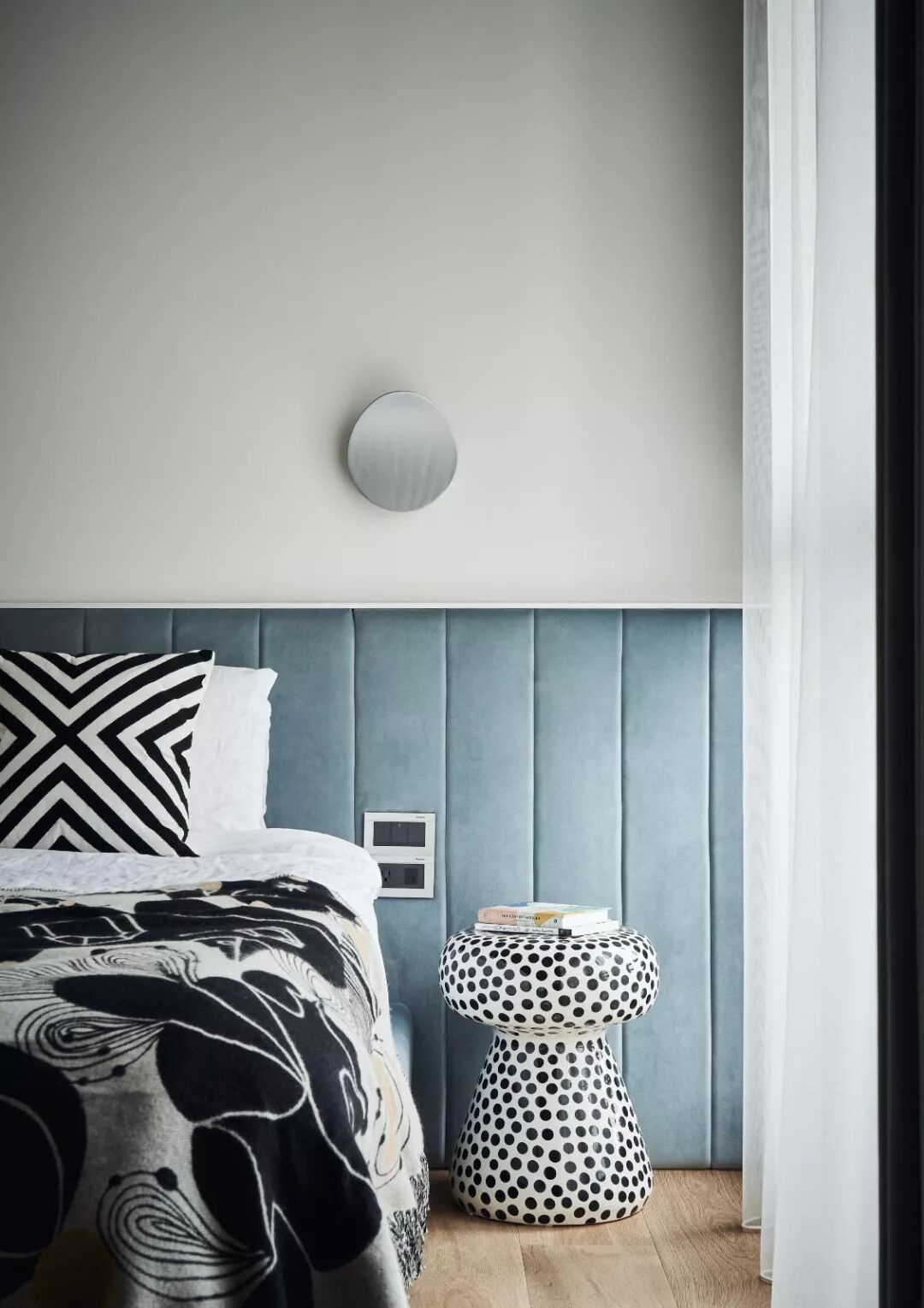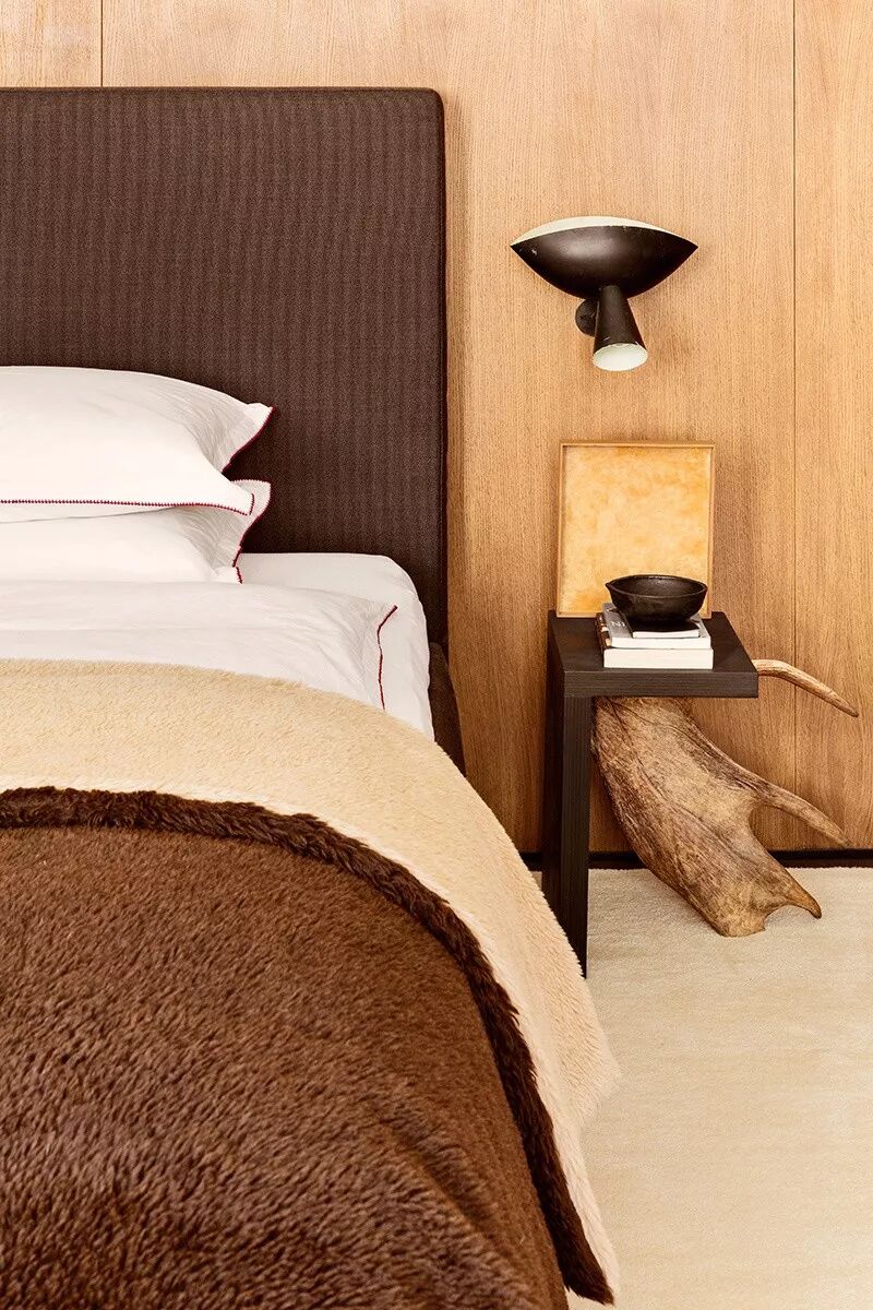 木质茶几、金属小桌,甚至墙壁上一块多出来的置物板,都能完美替代床头柜,看起来清爽又时尚。
