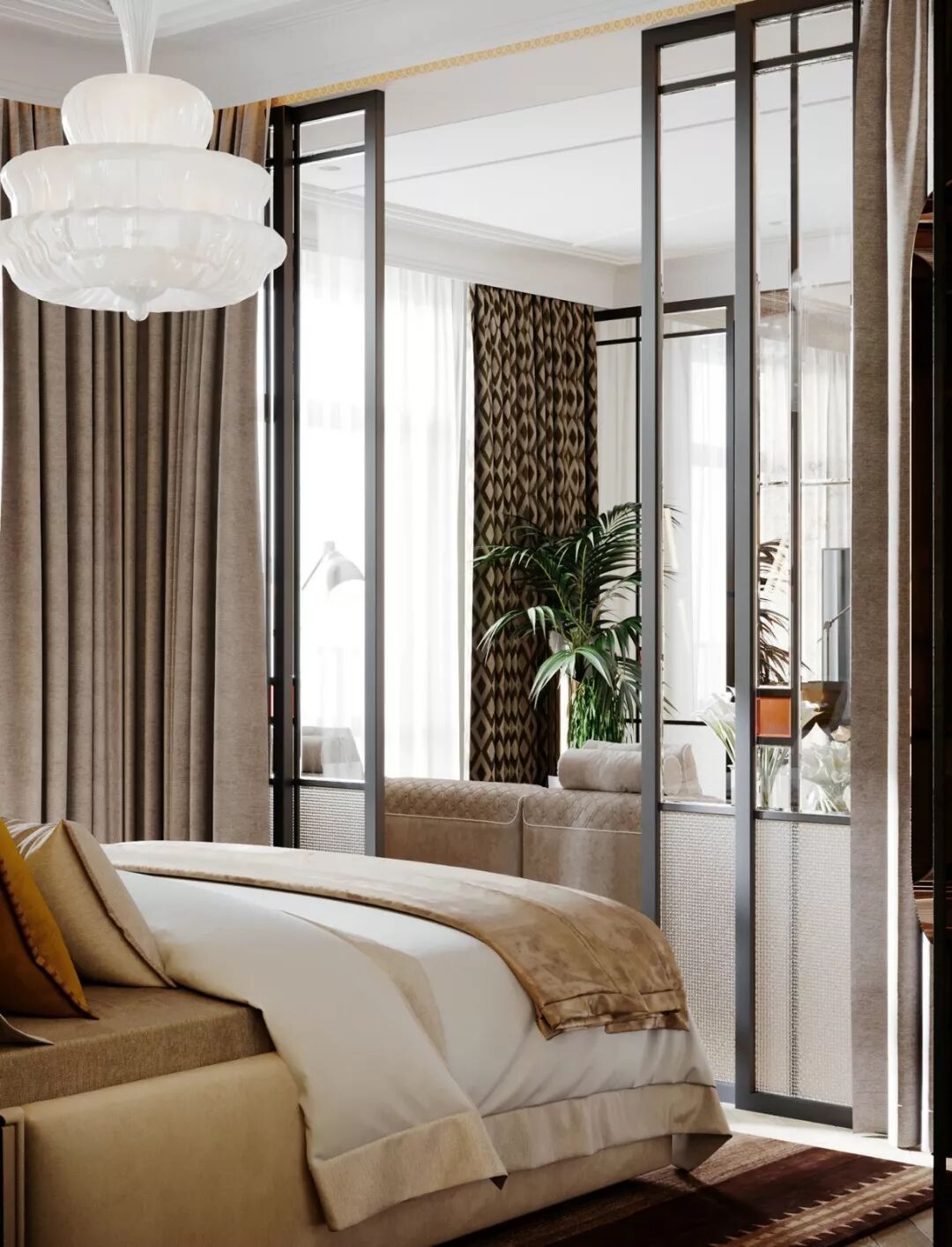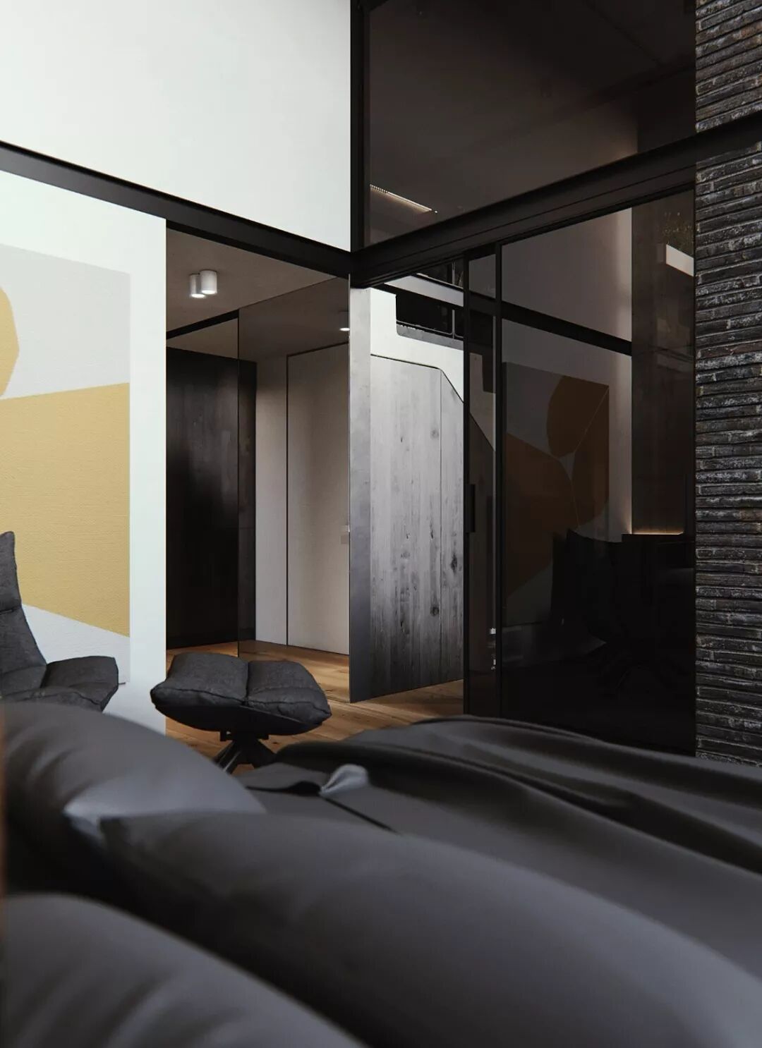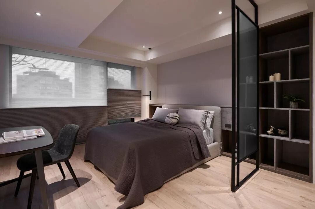通透的隔断打破了不同空间之间的阻隔,让四面墙壁的限制少了一些,整个卧室看起来自然也就宽敞了不少,并且对室内光线也有改善作用。