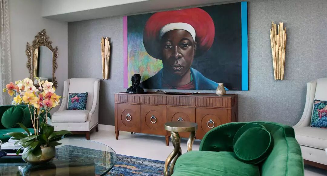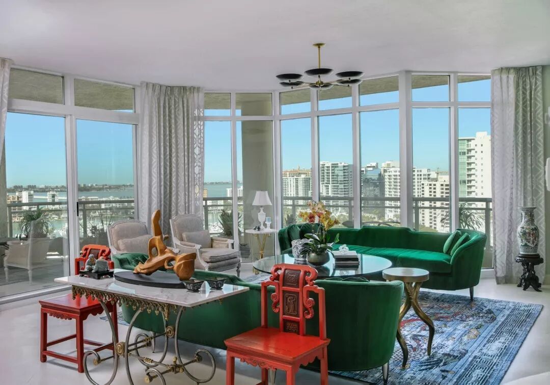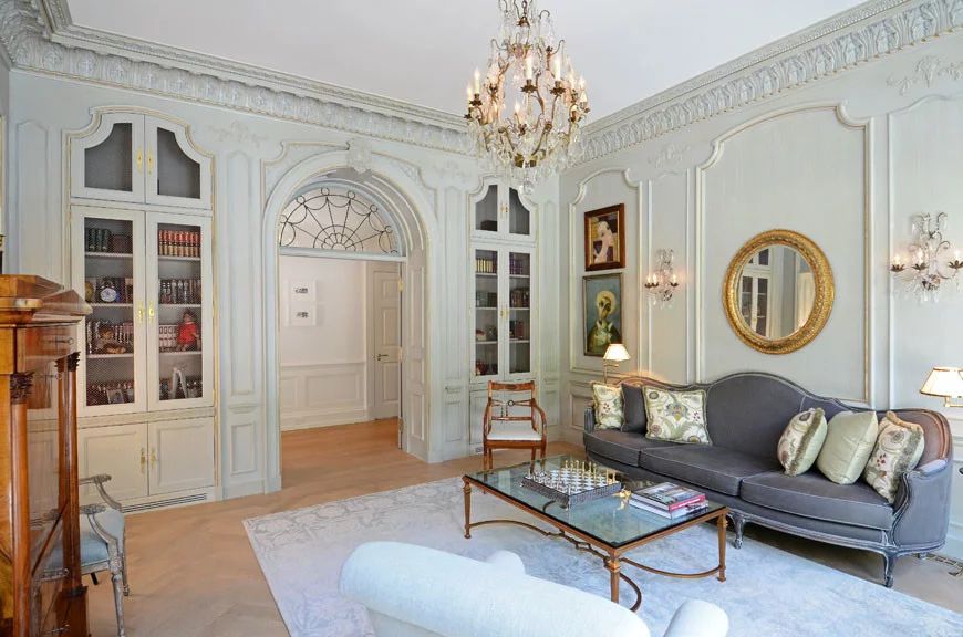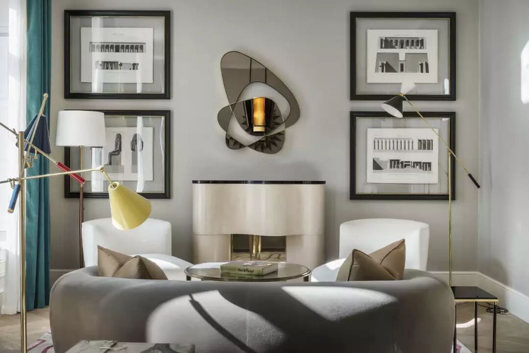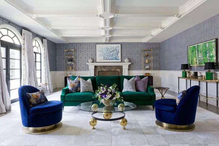 -灰绿色空间+银色地毯+钢灰色沙发-