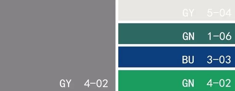 色卡:鲨鱼灰+百合白+古典绿+米克诺斯蓝+凯利绿