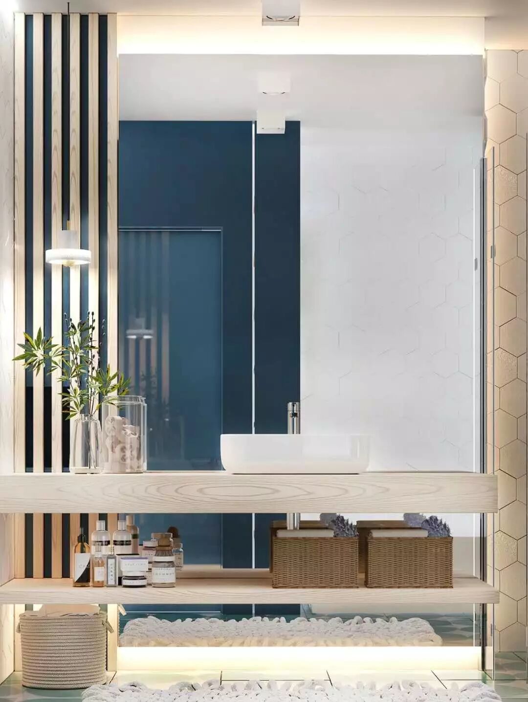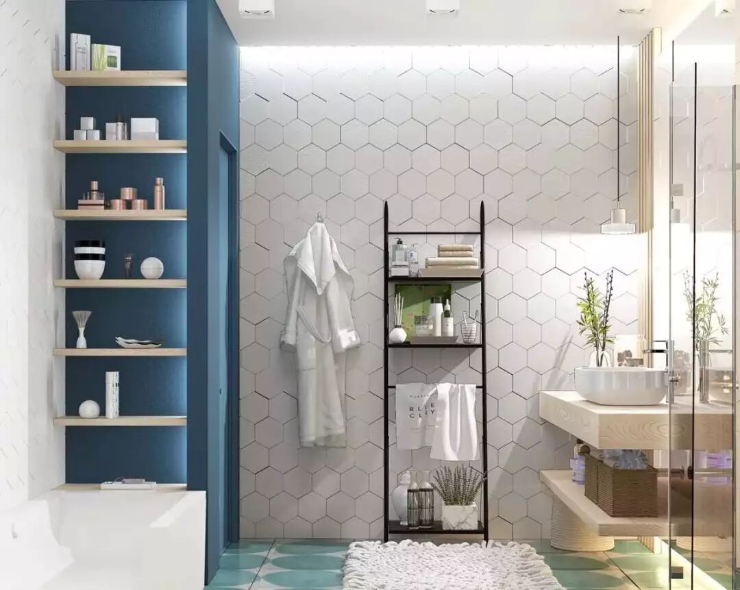 ▲卫生间周边,摆上绿植和卫生间用品,不仅文艺,而且实用性极强。(在卫生间做壁龛也是取巧的收纳设计,如果墙面厚度足够,掏出一小块位置来收纳也是不错的。)