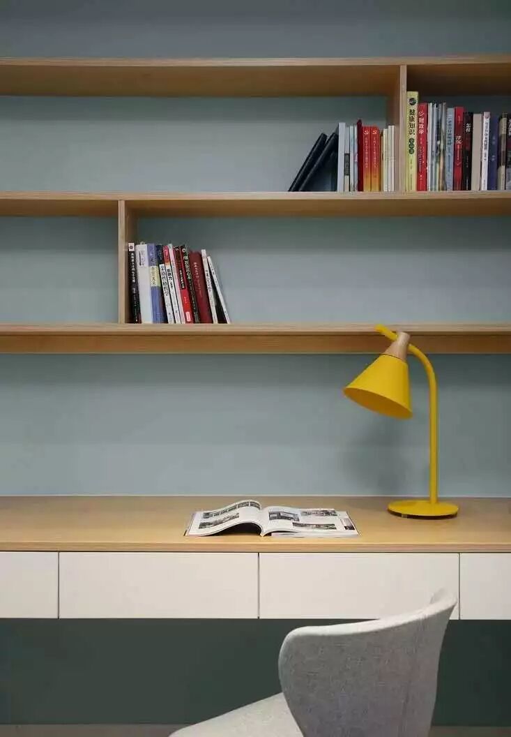 ▲办公学习区,可以放书或者小物件,摆放整齐,变身最美工作学习区。但是搁板的承重要事先考虑,尤其是放置书籍的搁板,一般托架式、斜拉式搁板支撑力较强可以优先考虑。