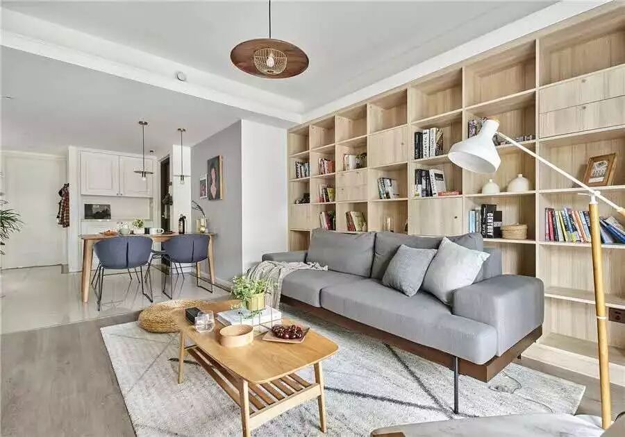 至于要怎么设计,可以根据自家的实际情况来。例如:有的人需要放置大量书籍,便做成了大面积书柜。有的人只需要放置些小物件,设计隔板+电视下方收纳柜即可。