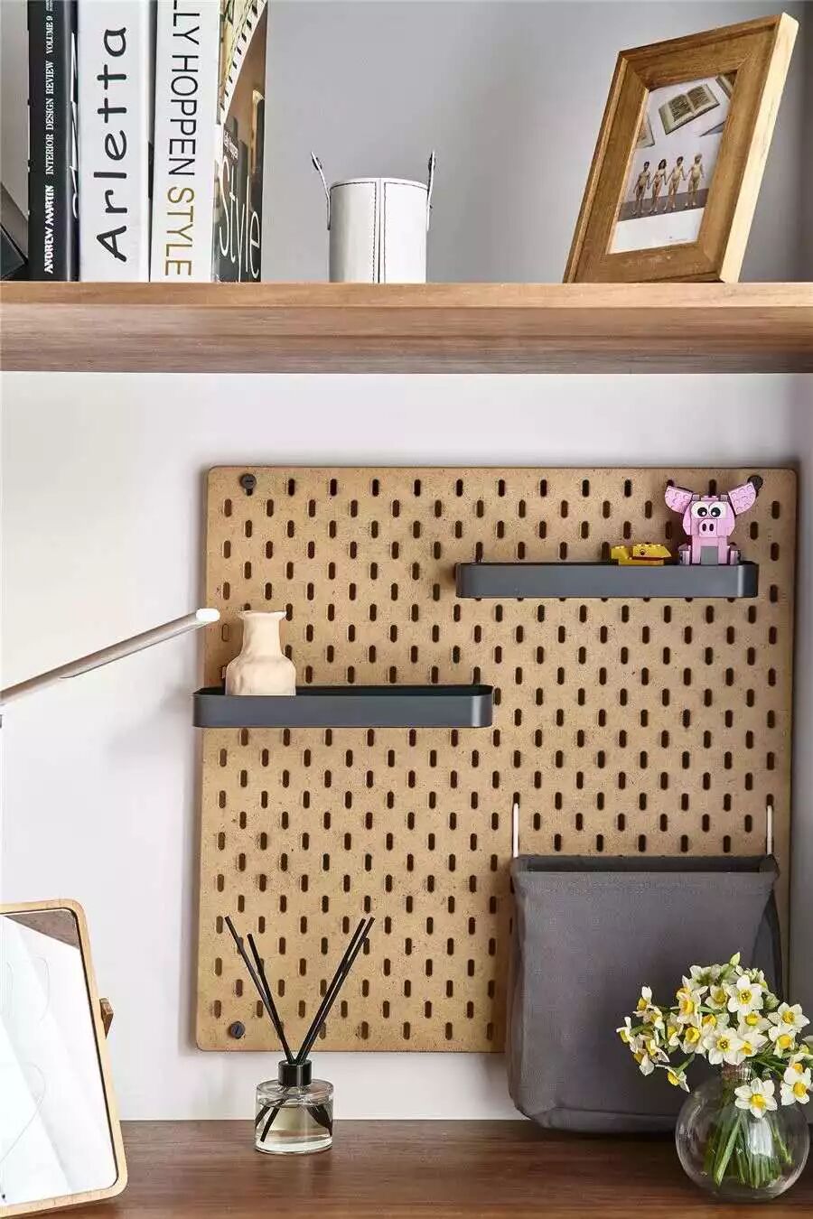 洞洞板的使用不限制场景,放在客厅、卧室、厨房都是可以的。哪里需要就装置在哪里,美观又实用,且价格便宜。