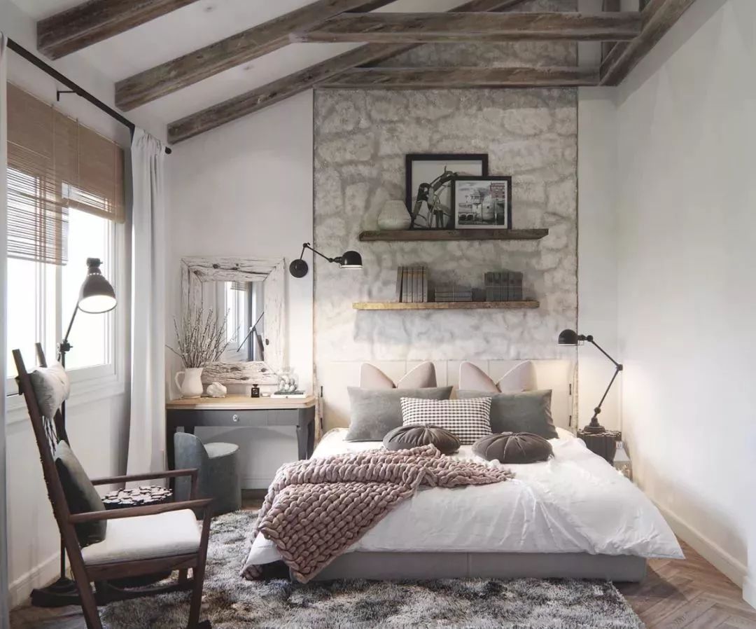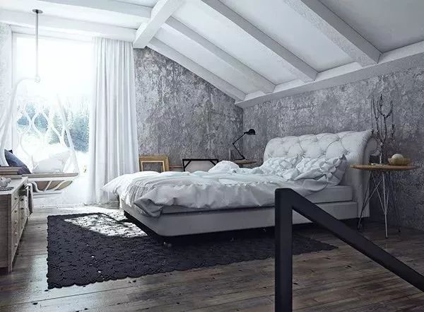 阁楼位于空间的高处,是接近自然的位置。把它设计成具有乡村风格的卧室再好不过了。但是,因为层高的局限性,阁楼最好搭配矮床设计。