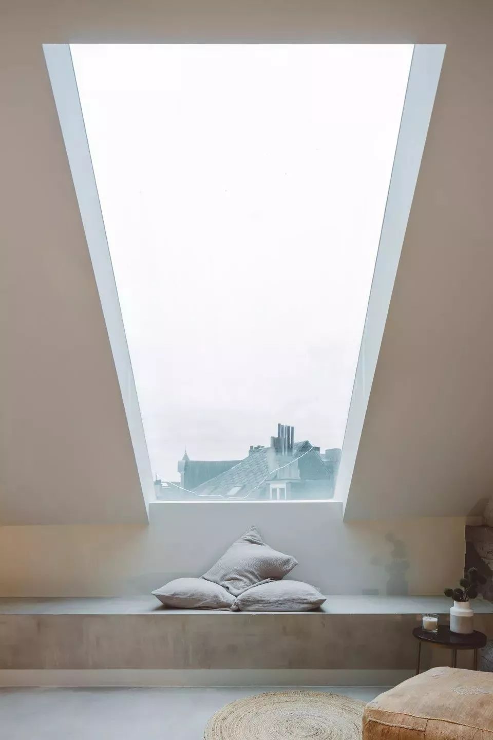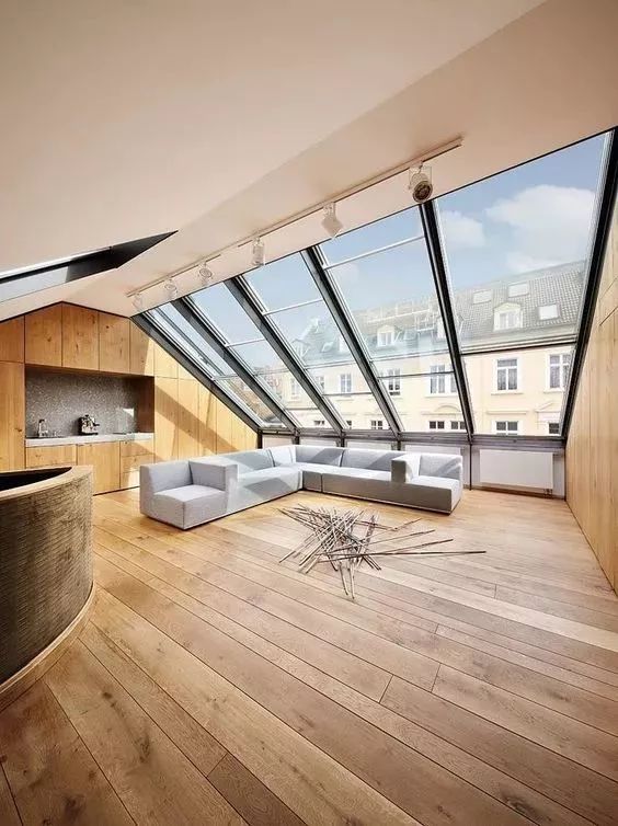 阁楼的窗户一般较小,自然采光也是阁楼的一大难题。在设计时需要多加一些灯光照明,最好将窗户打造落地式或者天窗式,会让空间更通透、明亮。