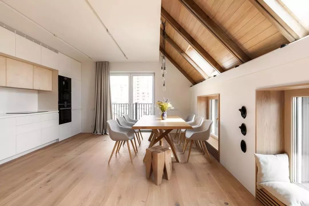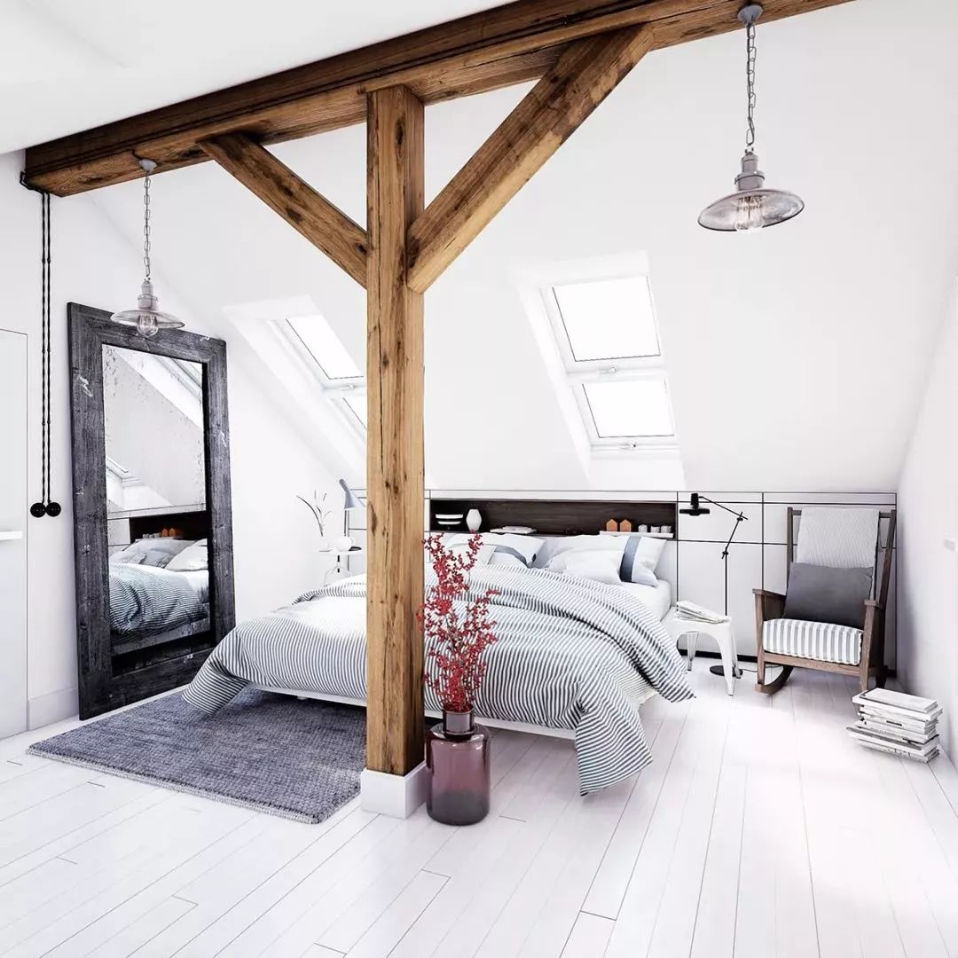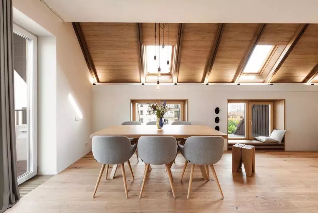 阁楼顶面原有的建筑结构一定不能动,这些裸露的架梁、承重柱等,都具有承重作用,不能被破坏。