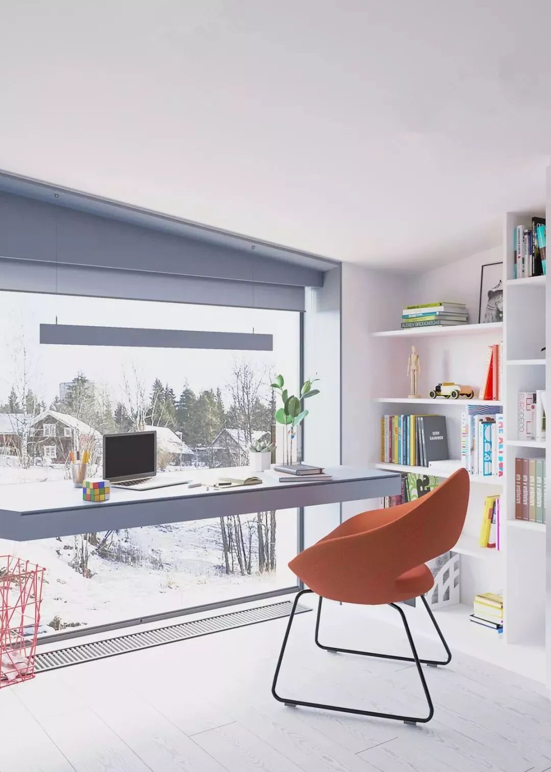 书桌的位置最好放在采光充足的地方,最好在墙上开1~2个窗,窗户的形状不必拘谨,圆形、三角形、菱形都可以。此外,还可以根据自己的喜好,摆放或悬挂一些有品位的工艺品或装饰品。