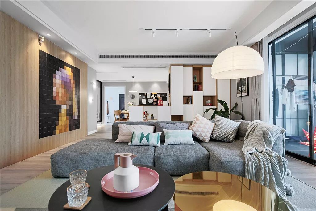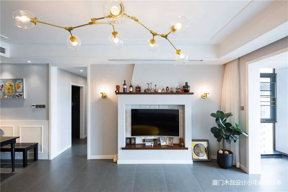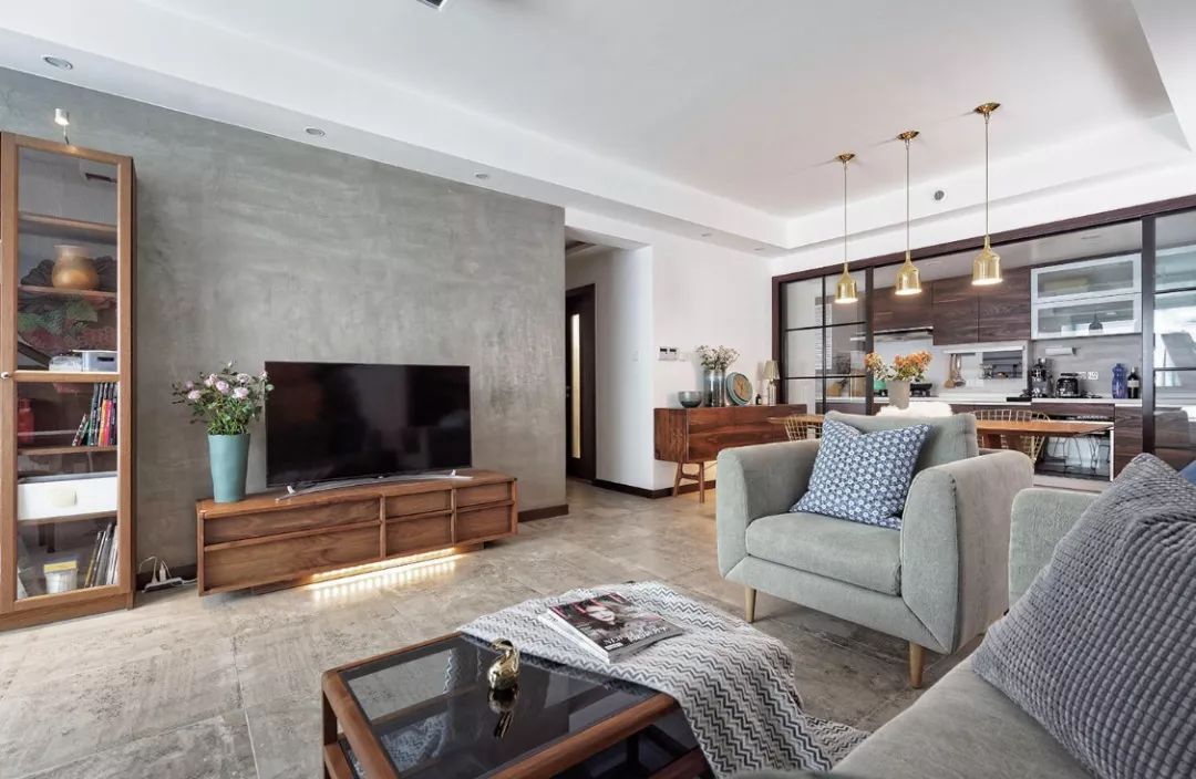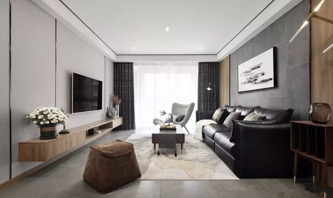 简约风,极简风最常用的手法,简洁,利索,而且整体感强。当然,也有一种做法下面留空5-10公分。