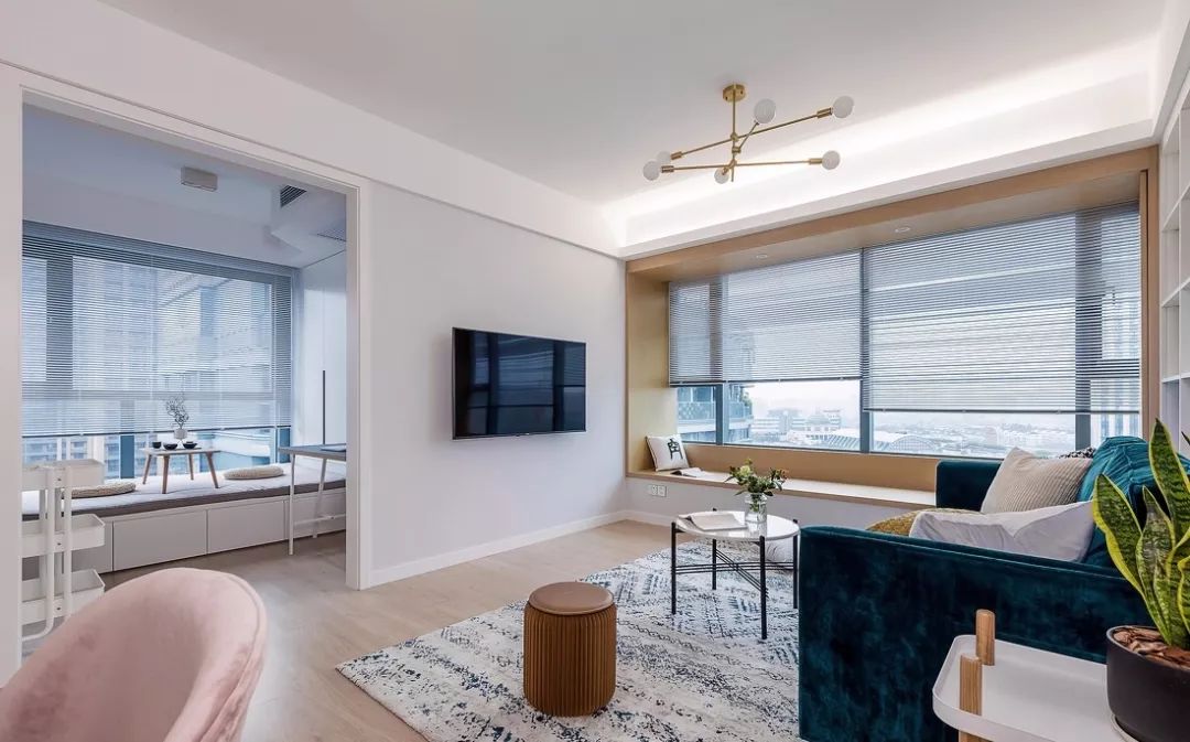 空间太小,层高不够,踢脚线就别刷存在感啦。如果地板和墙面的交界太过明显,很容易将空间的真实面积和层高暴露无遗。