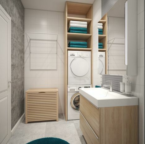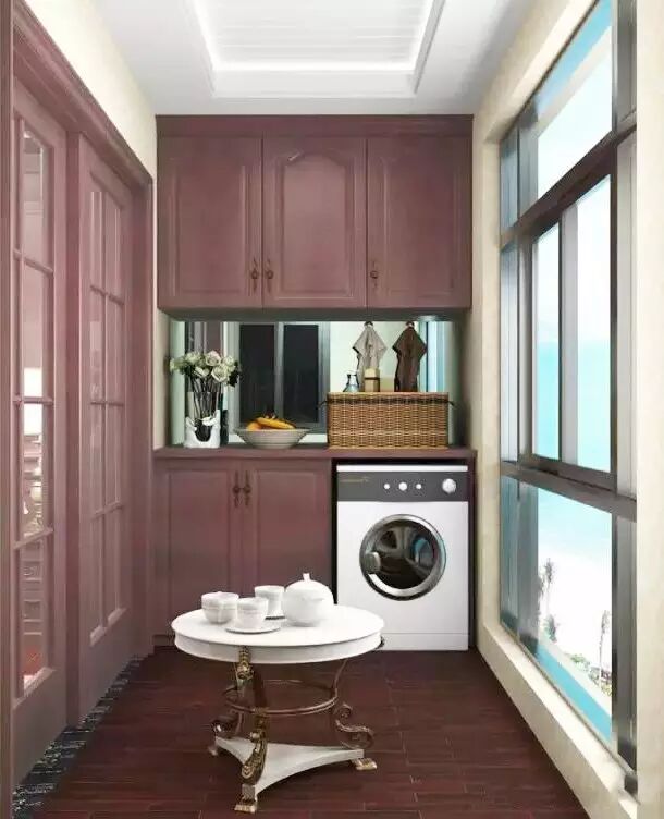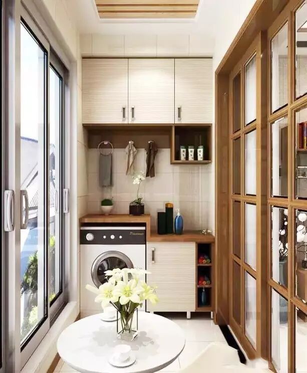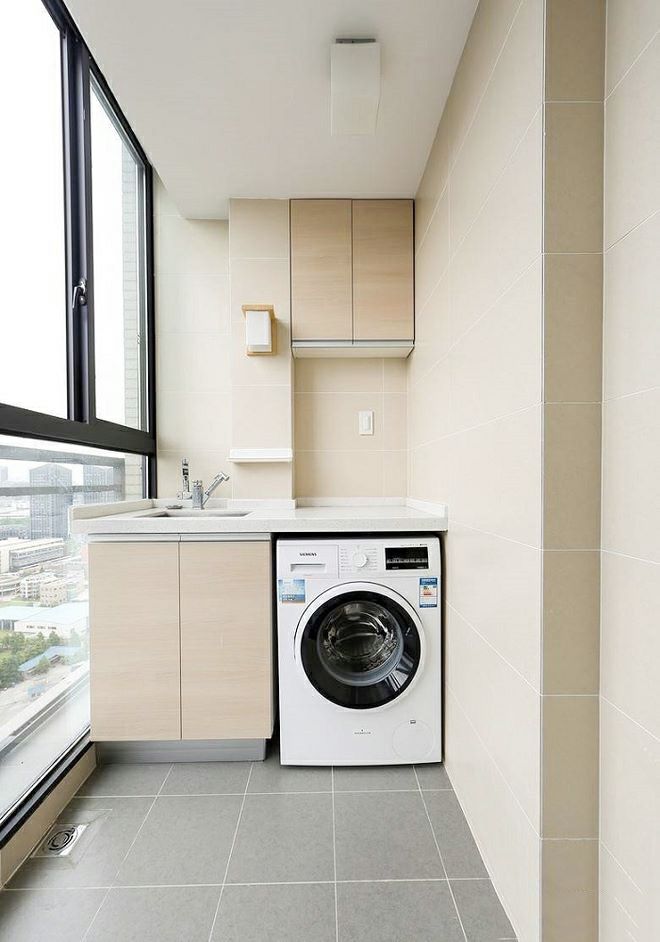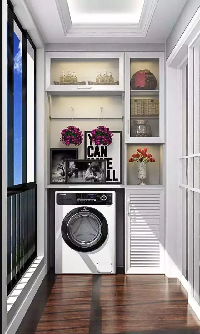 卫生间面积不够,或者觉得阳台放洗衣机比较方便的小伙伴 ,也可以考虑把洗衣机放阳台,这样洗完直接晾晒。