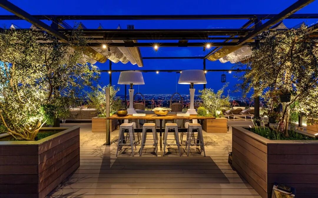 主卧室在顶层,这里的露台能看到洛杉矶的景色▽