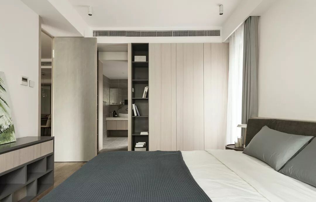 ▲衣柜侧边还加入了开放式的格架,睡前的书籍、手机、眼镜的小物品可以方便地放置于此,让生活处处都是便利。