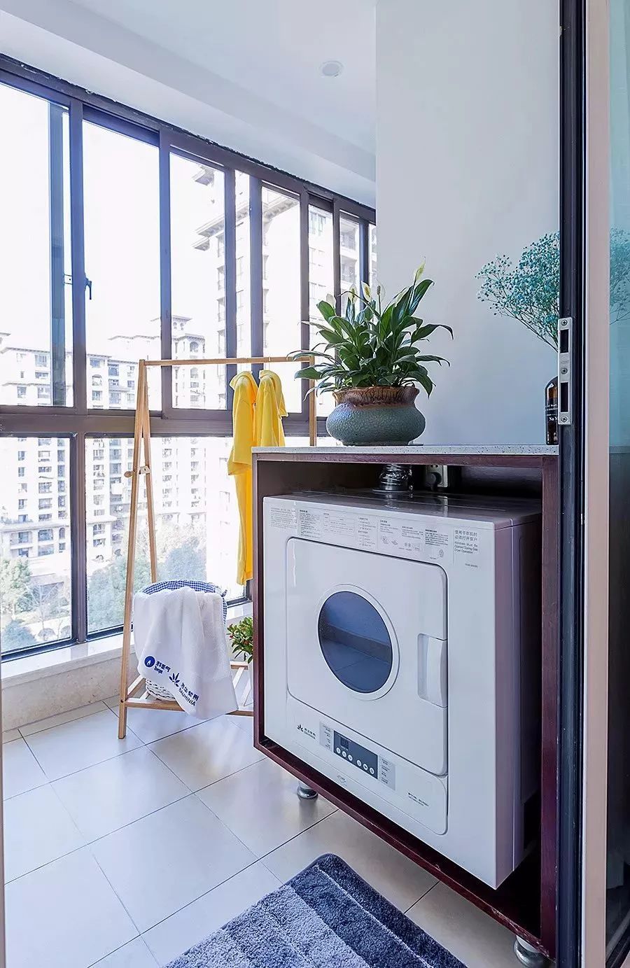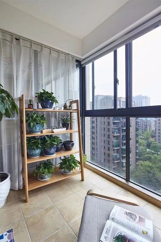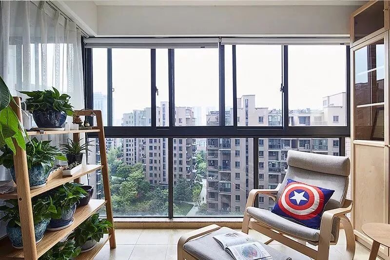 封闭阳台,最为常见的就是以玻璃落地窗直接封闭阳台,这样既保持阳台的光亮,又能遮风挡雨,非常的美观实用。