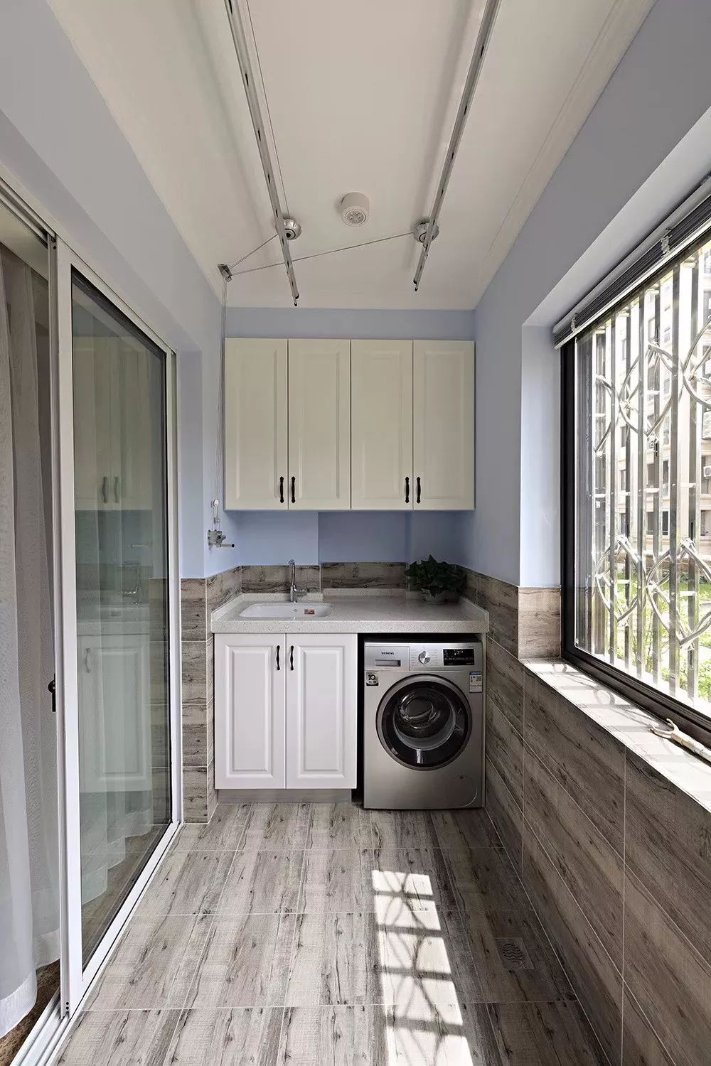 33、若层高较矮,担心玻璃窗不防盗,还可以如下图这样加装防盗网哈~