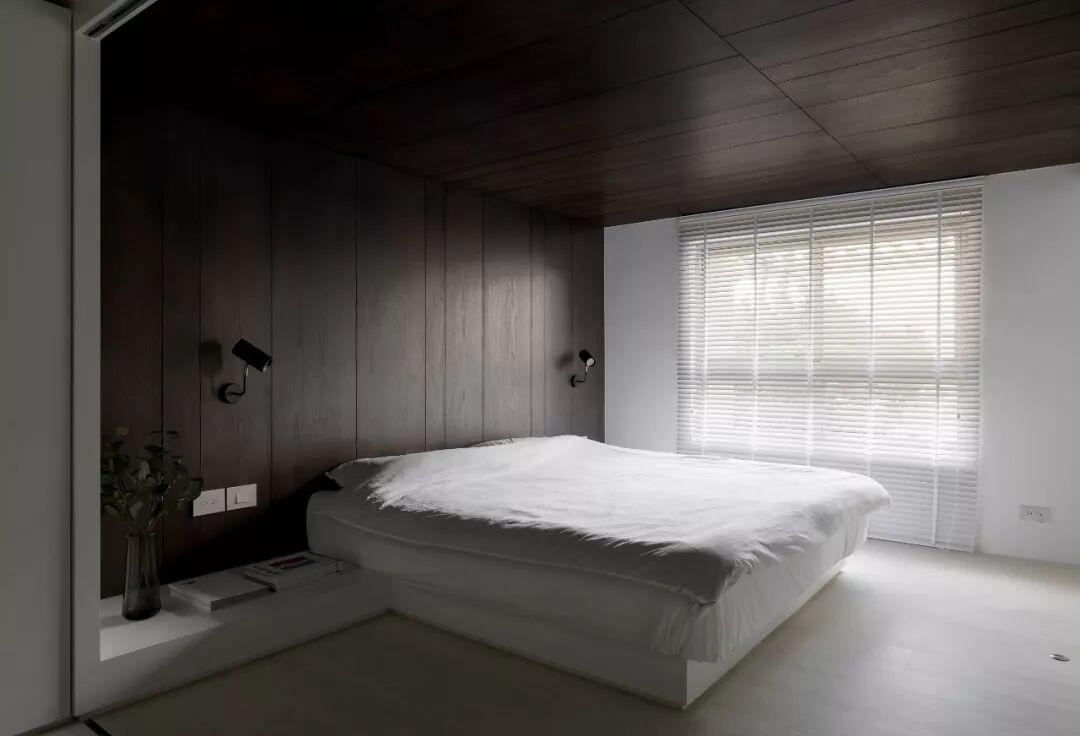 卧室设计以白色+深木色为主,