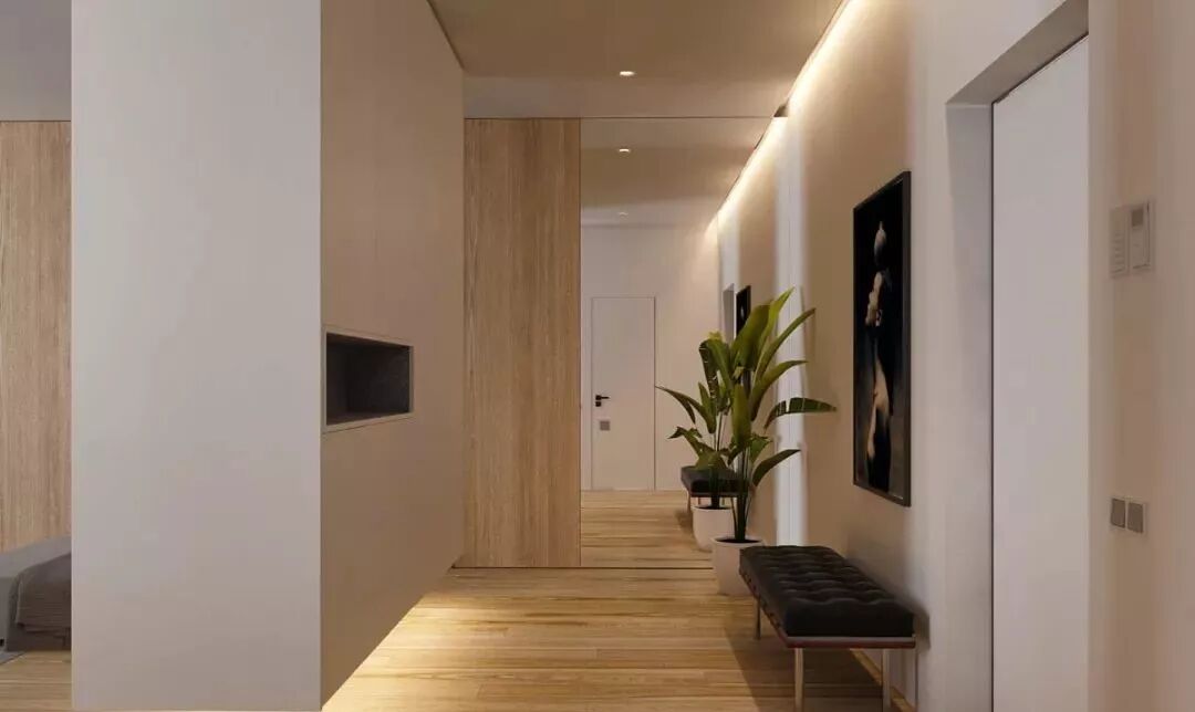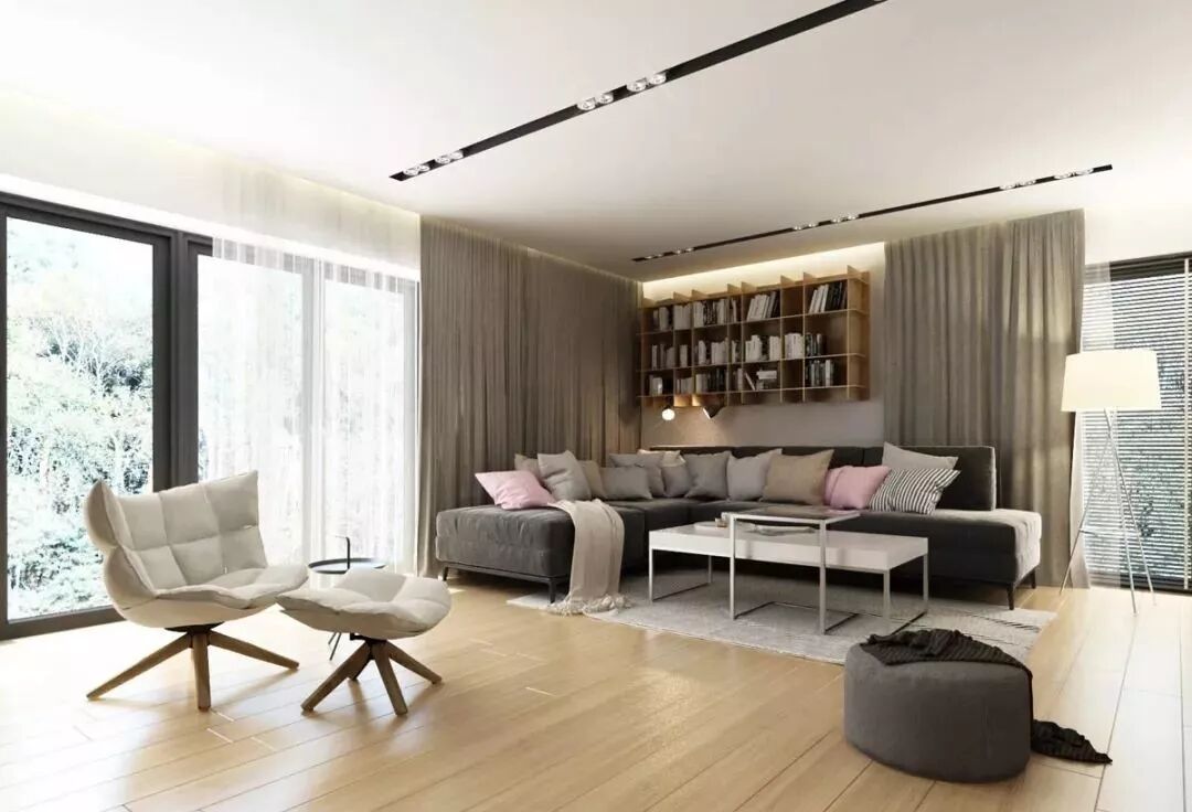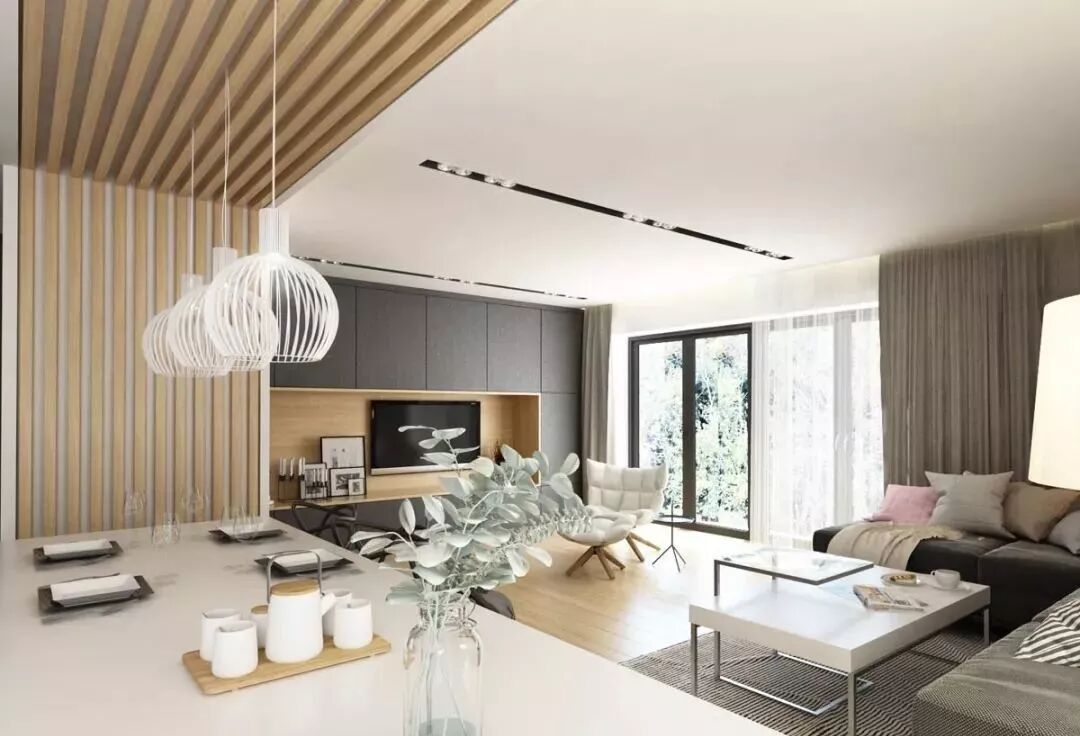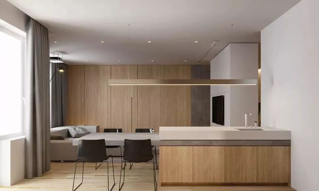 舒缓无压的现代风简约设计,为居宅留住温润静谧的流年时光 ,我们可以看到完整的木质材料的整体风采,搭配部分场景中的灰色设计,形成一个完美的搭配设计,在木色与灰色的交织中,感受自然纯粹。