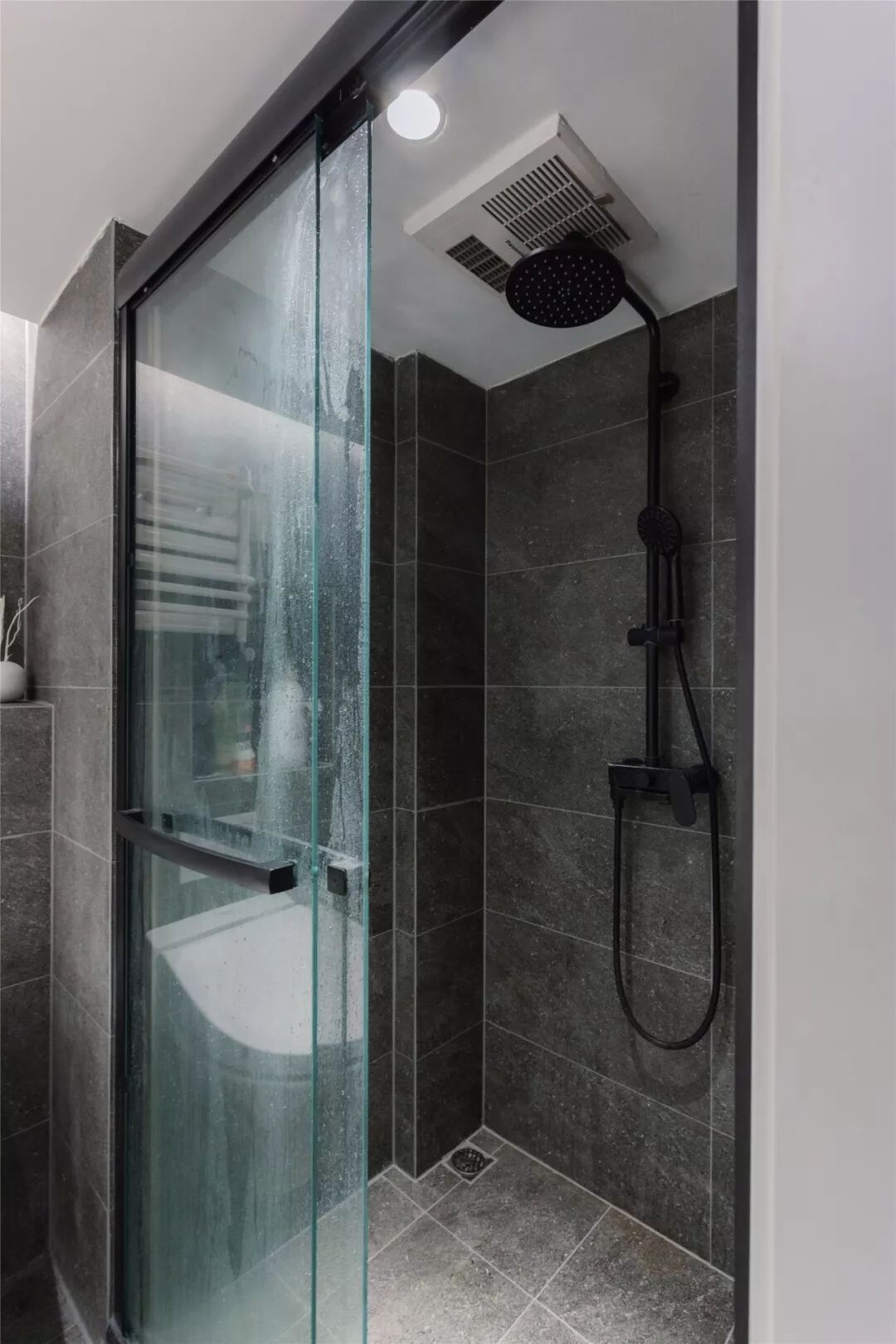 ▲黑色的五金件与玻璃推拉门框,整体质感统一大方。