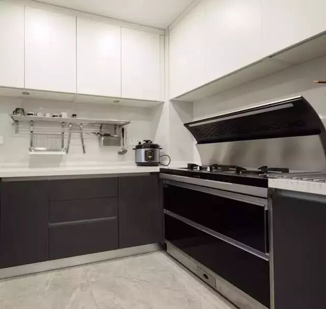 吊柜高度决定了取放物品的便捷性。吊柜低一些,当然方便取放东西,但同时压缩了操作台上空的空间,并且在视觉上会显得压抑,让厨房更显狭小。