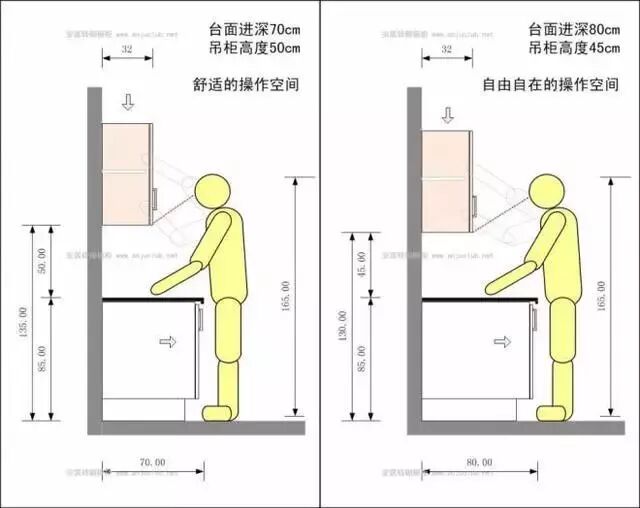橱柜高度设计,主要包括台面高度及吊柜高度两部分。