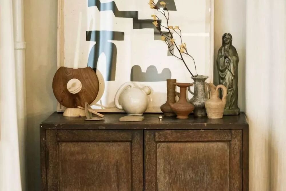 因为不想追随流行或所谓的同款,我渐渐开始对中古器物和小众家居产生兴趣。中古家具因为它的使用历史、色泽的变化,带着一种厚重感,每一件都是独一无二。而它的使用痕迹,也让我觉得很有安全感。