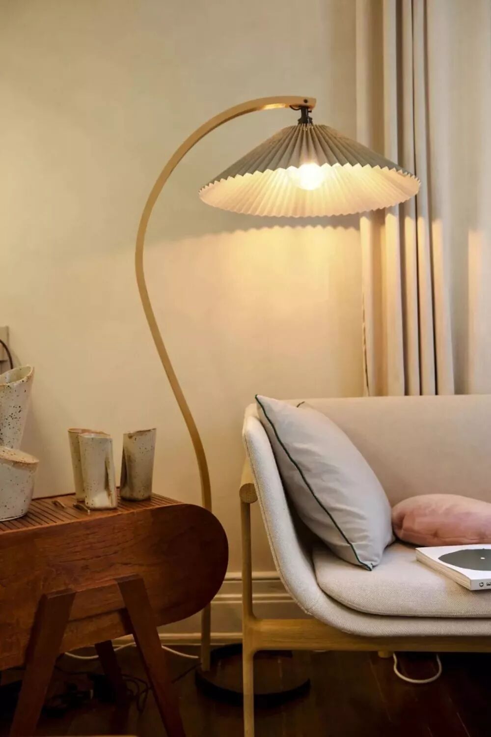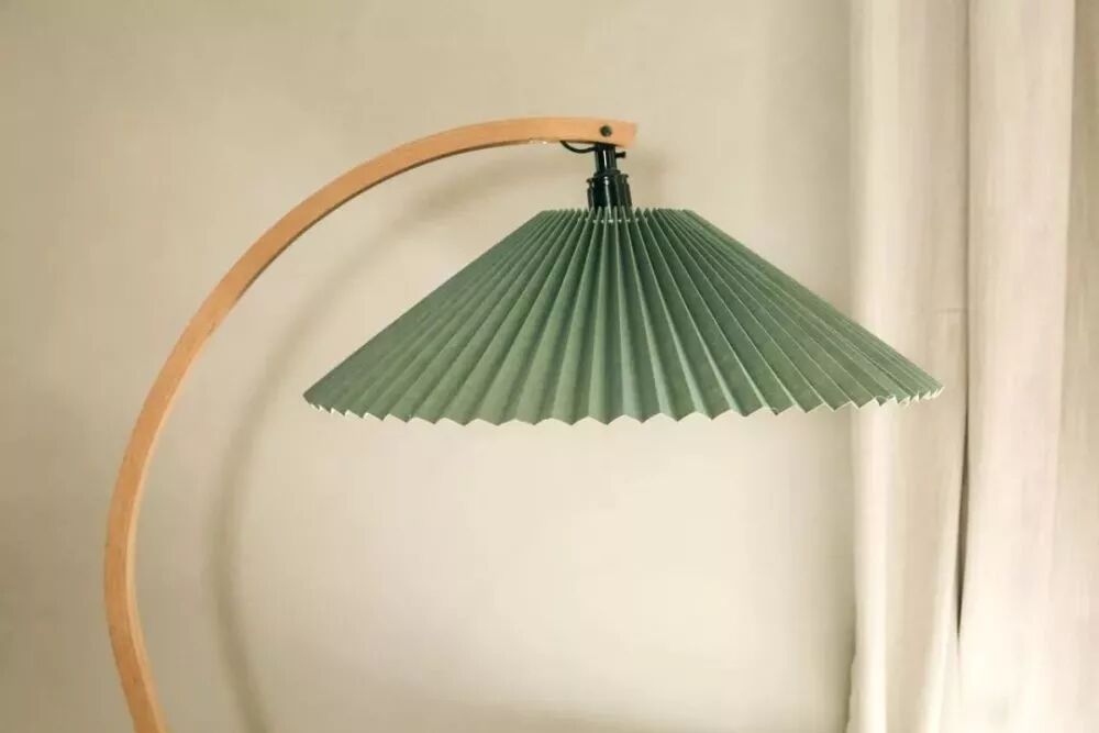 这个古董落地灯,它的褶皱灯罩,和整体弧度的线条很美。家里也还有很多其它这种褶皱形灯具。