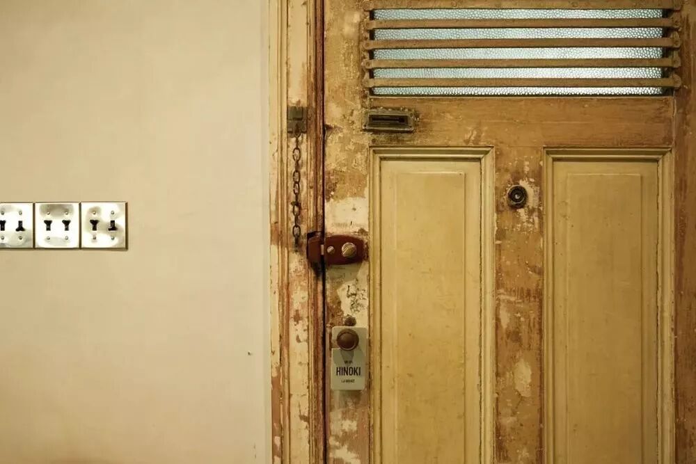 房间里所有的门,都是原本房子留下来的门的再利用。门本身形态很美,于是专门找工匠进行了5次反复的脱漆打磨,重现它斑驳的原始质感。
