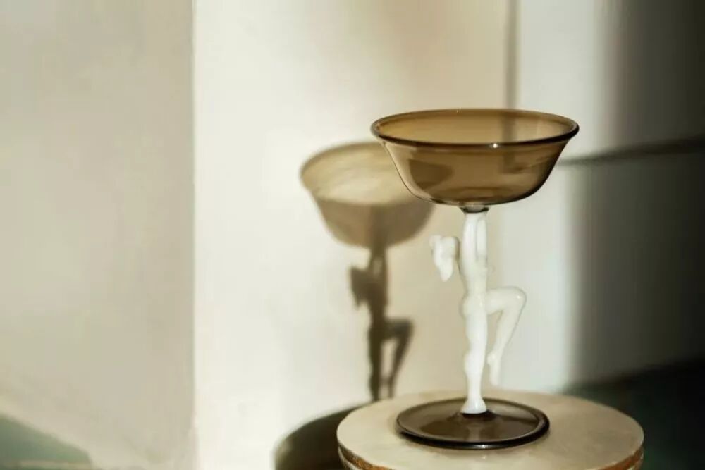 这个红酒杯是法国40年代的古董酒杯,当时一眼就看中它,因为它的底座是芭蕾舞团员造型雕塑。它本来还有一个醒酒器,但是被我不小心失手摔烂了,现在只剩下一个小小的红酒杯,非常珍贵。