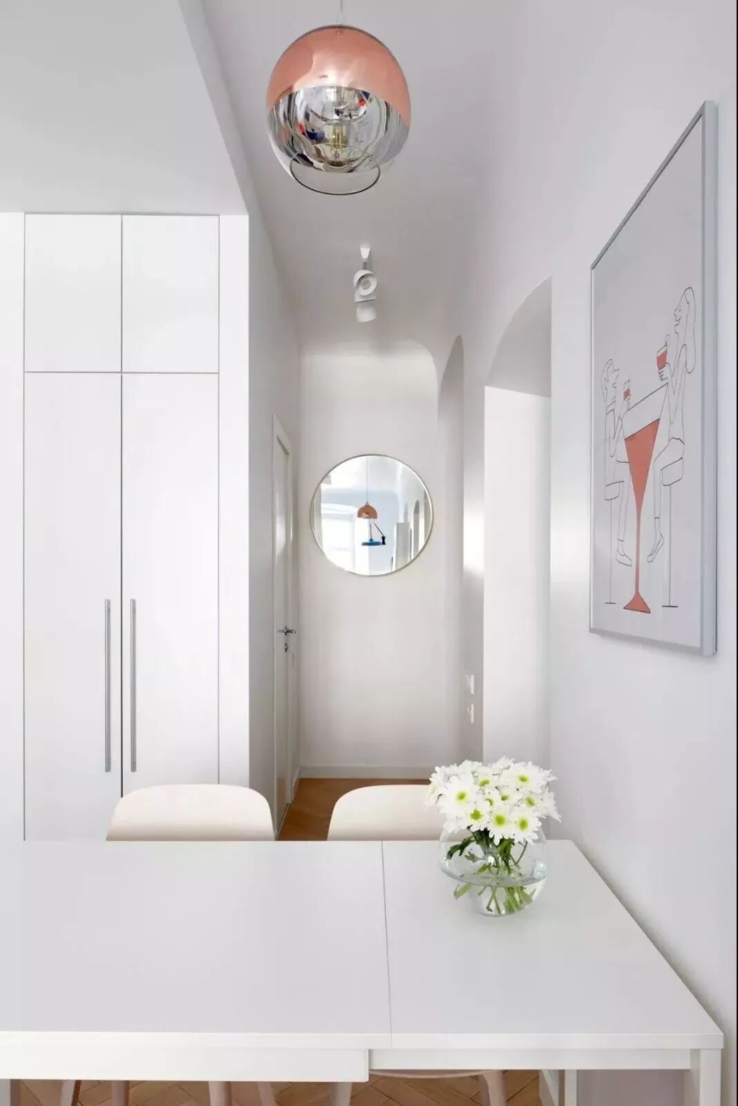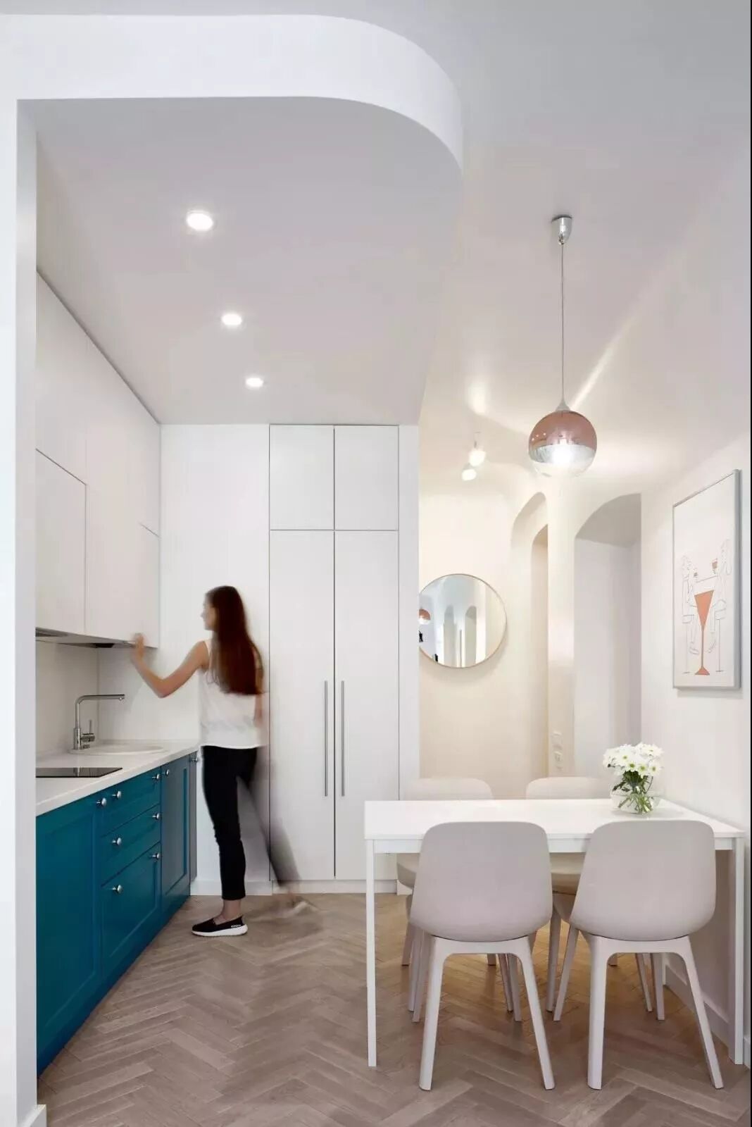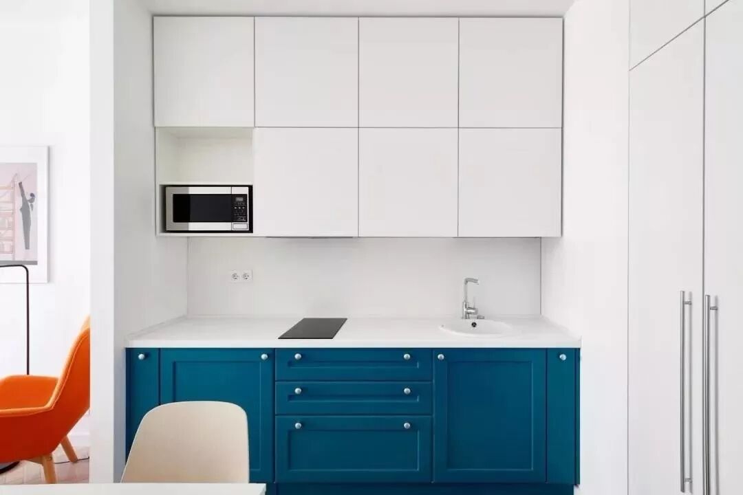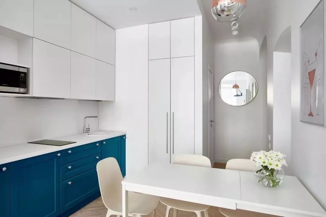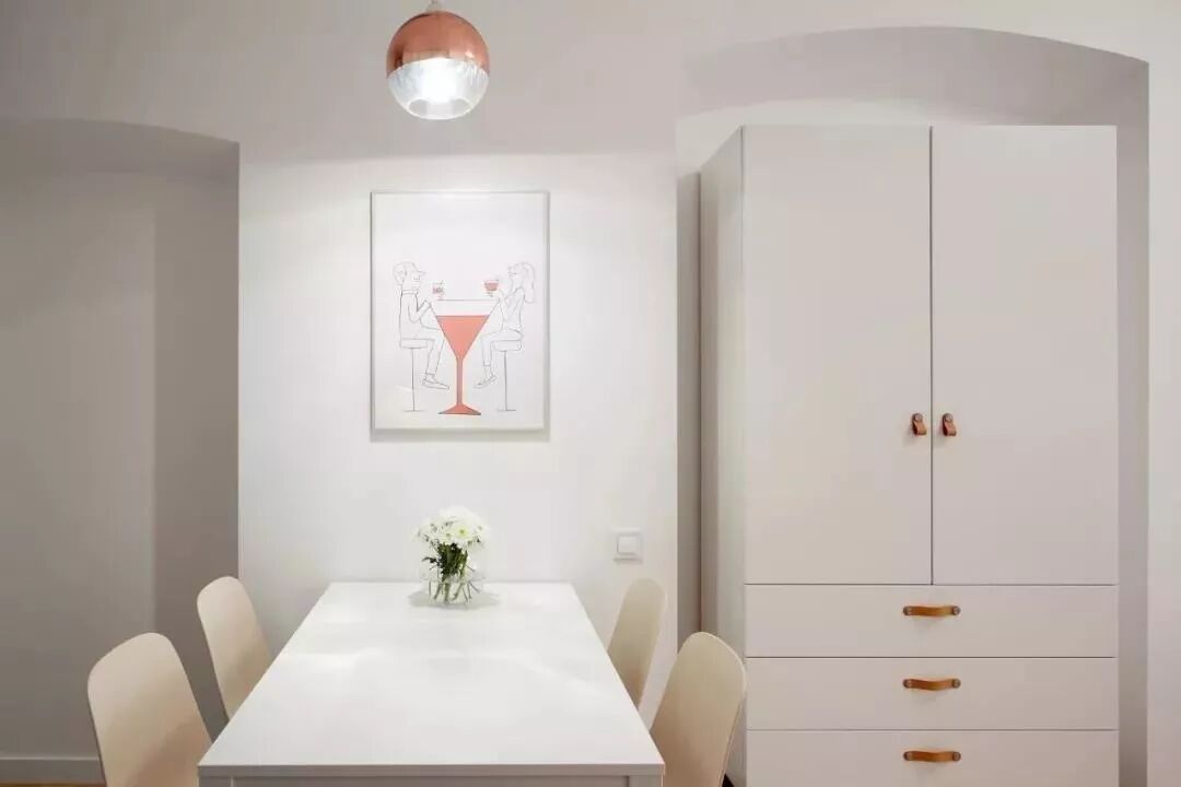 27㎡ 这样的简约设计,公寓虽小但功能却一应俱全,厨房、餐厅、卧室、卫生间都包含在內,每件物品的存在和布置都通过精心考量。