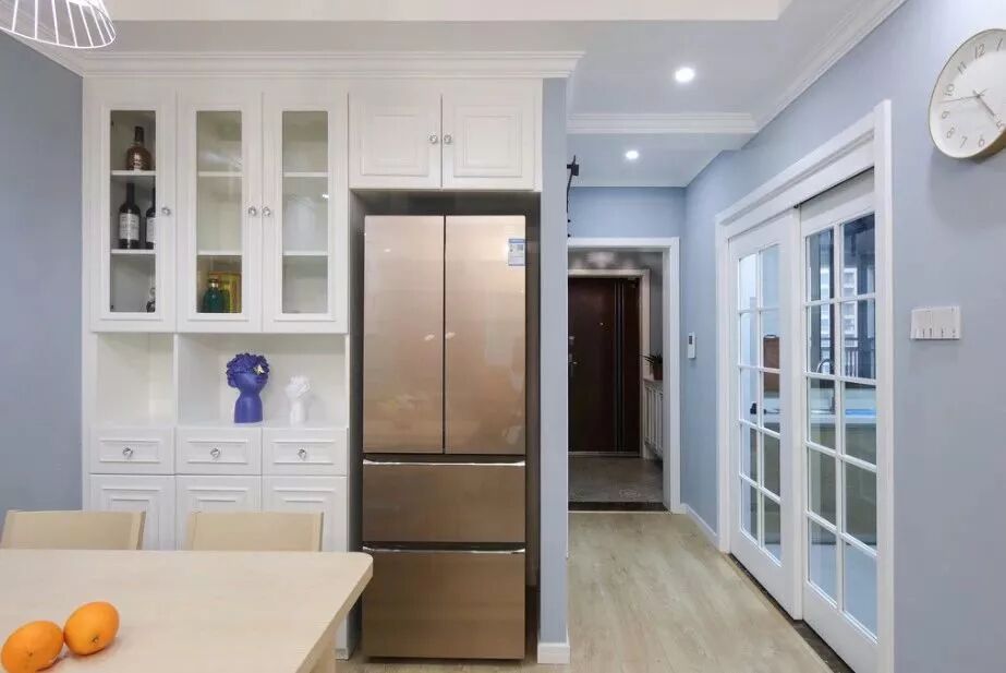冰箱是比较大件的家用电器,一般是摆放在厨房里面比较方便用的,很多人家都是把冰箱放在厨房里面的,但是有些冰箱比较大或是厨房比较小的,可能就需要把冰箱摆放在客餐厅区域了,这样一件大件的电器放在客餐厅里面,难免会觉得太过于碍眼了。