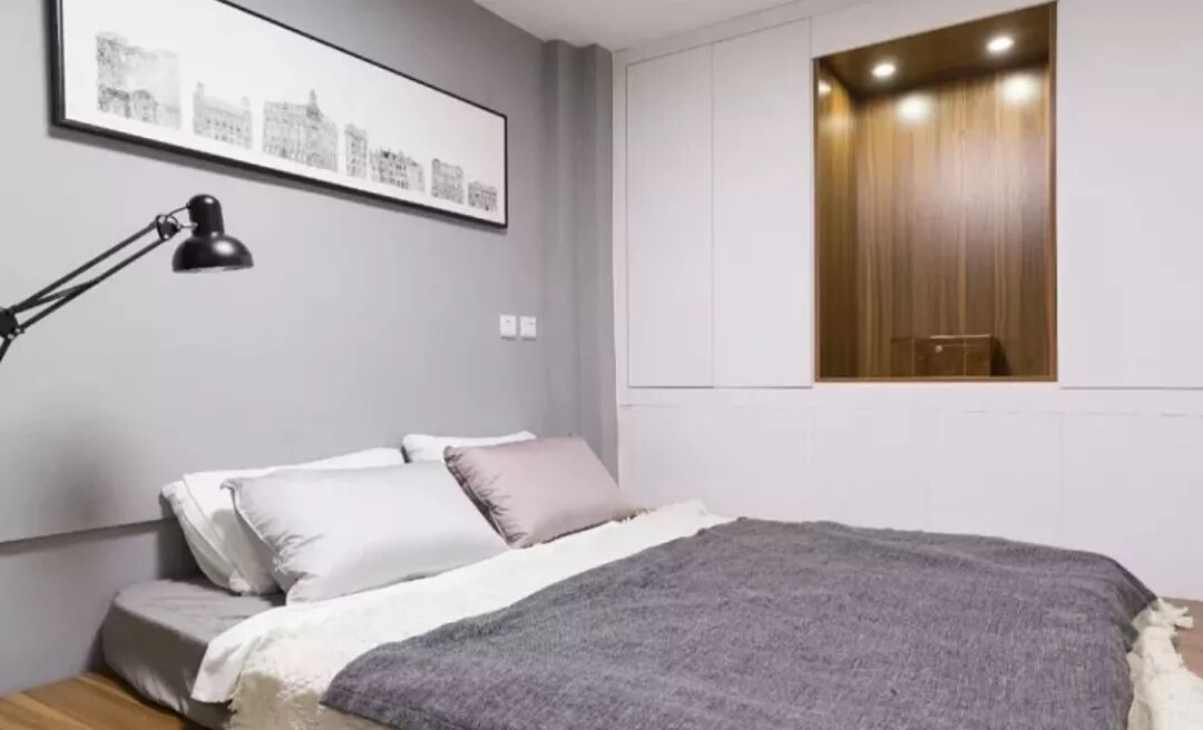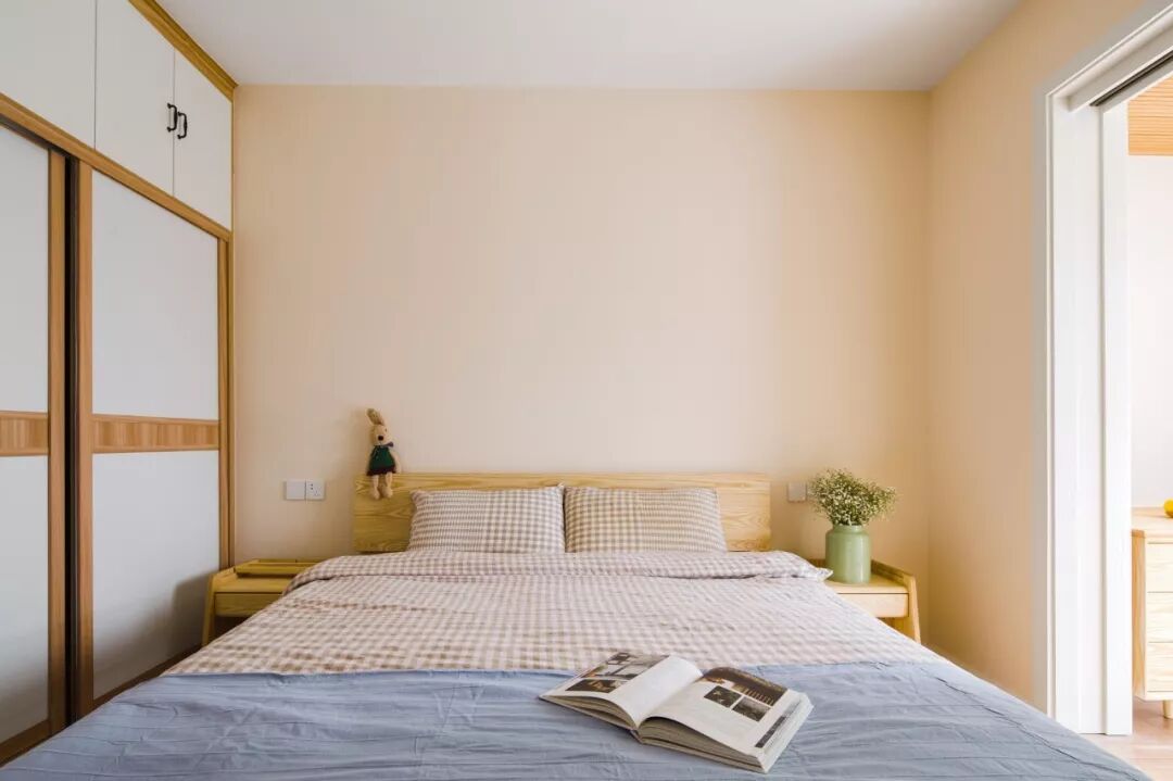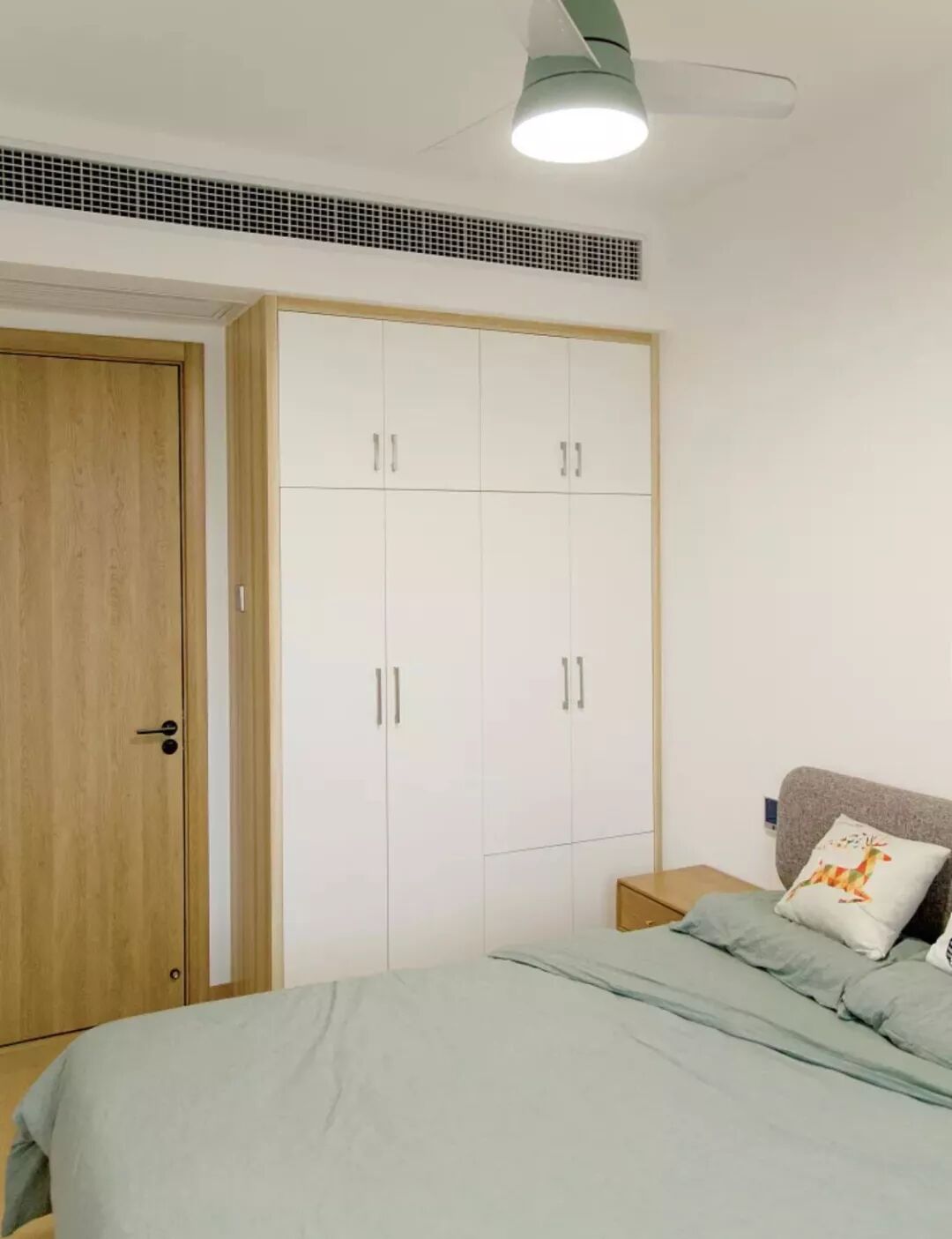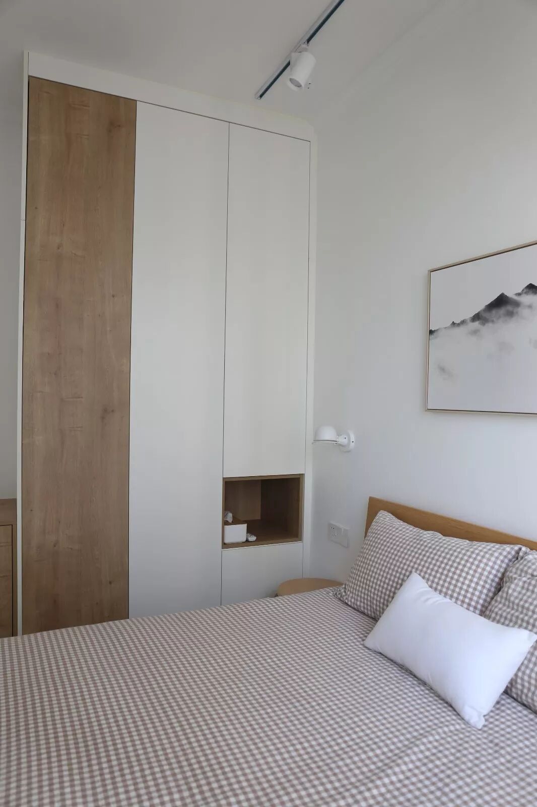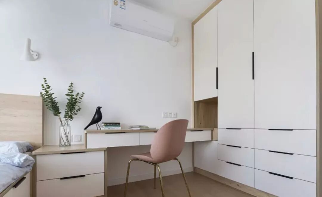 撞色衣柜,比较简单的做法就是在衣柜门里加入一块与整体衣柜不同颜色的柜板,结合整体软装布置,营造出一个优雅舒适的层次美感。
