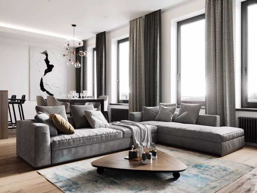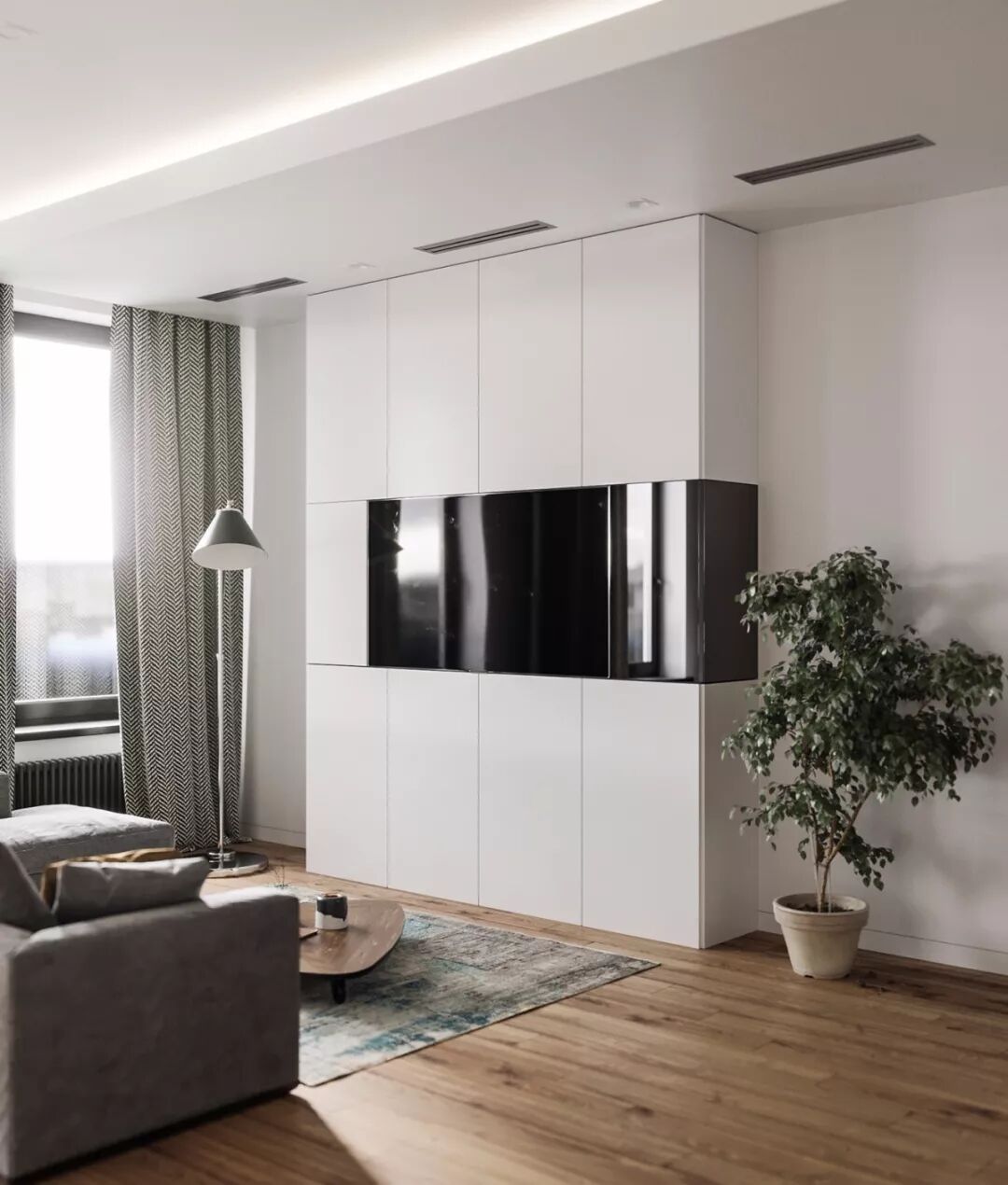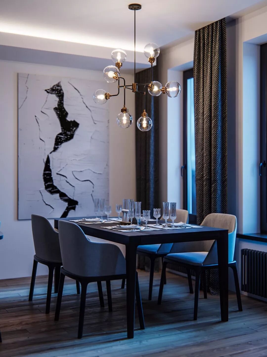 白俄罗斯Max Shpak室内设计,空间的整体色调中性灰色,以最简洁的线条,交汇出极致舒适的生活哲学;以艺术玩味空间,透过现代架构,善用材质与比例创造现代意境。