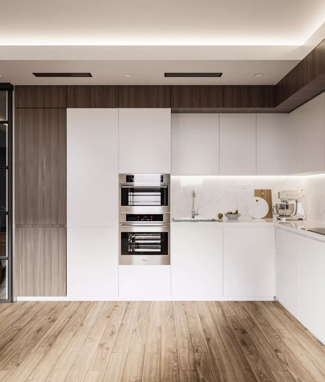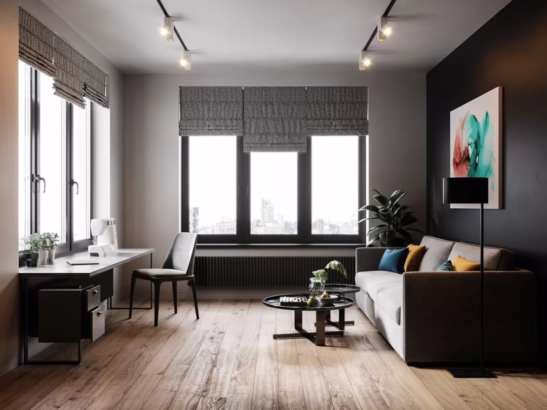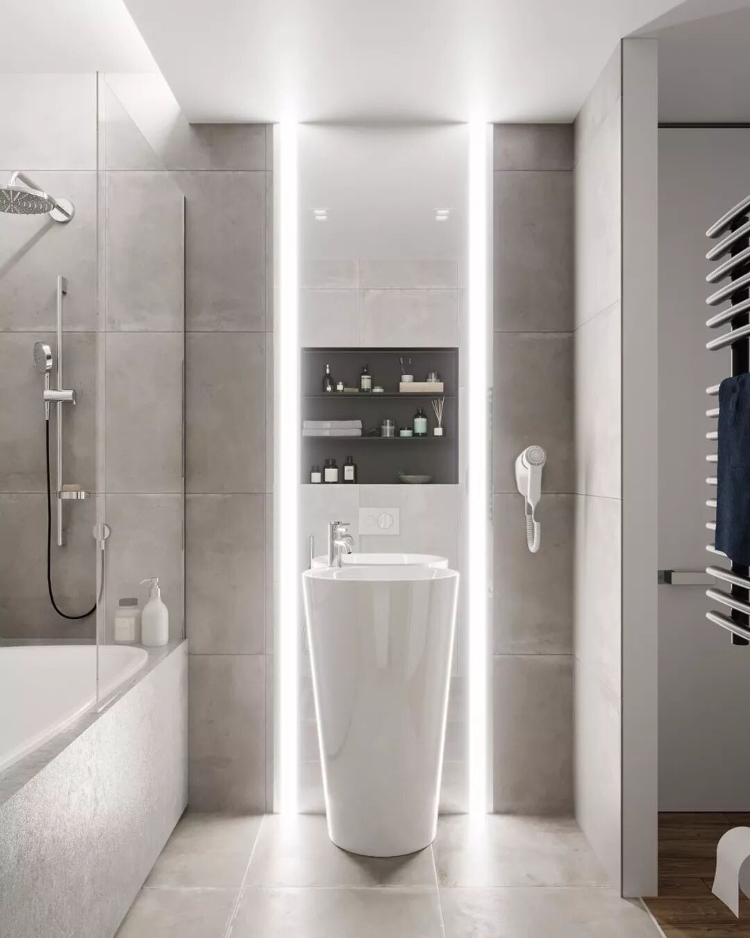 白俄罗斯Max Shpak室内设计,空间的整体色调中性灰色,以最简洁的线条,交汇出极致舒适的生活哲学;以艺术玩味空间,透过现代架构,善用材质与比例创造现代意境。